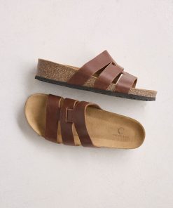 Celtic & Co Women’s Footwear Triple Strap Low Wedge Mules | Rust