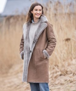 Celtic & Co Women’s Outwear Reversible Corded Sheepskin Coat | Taupe