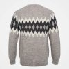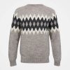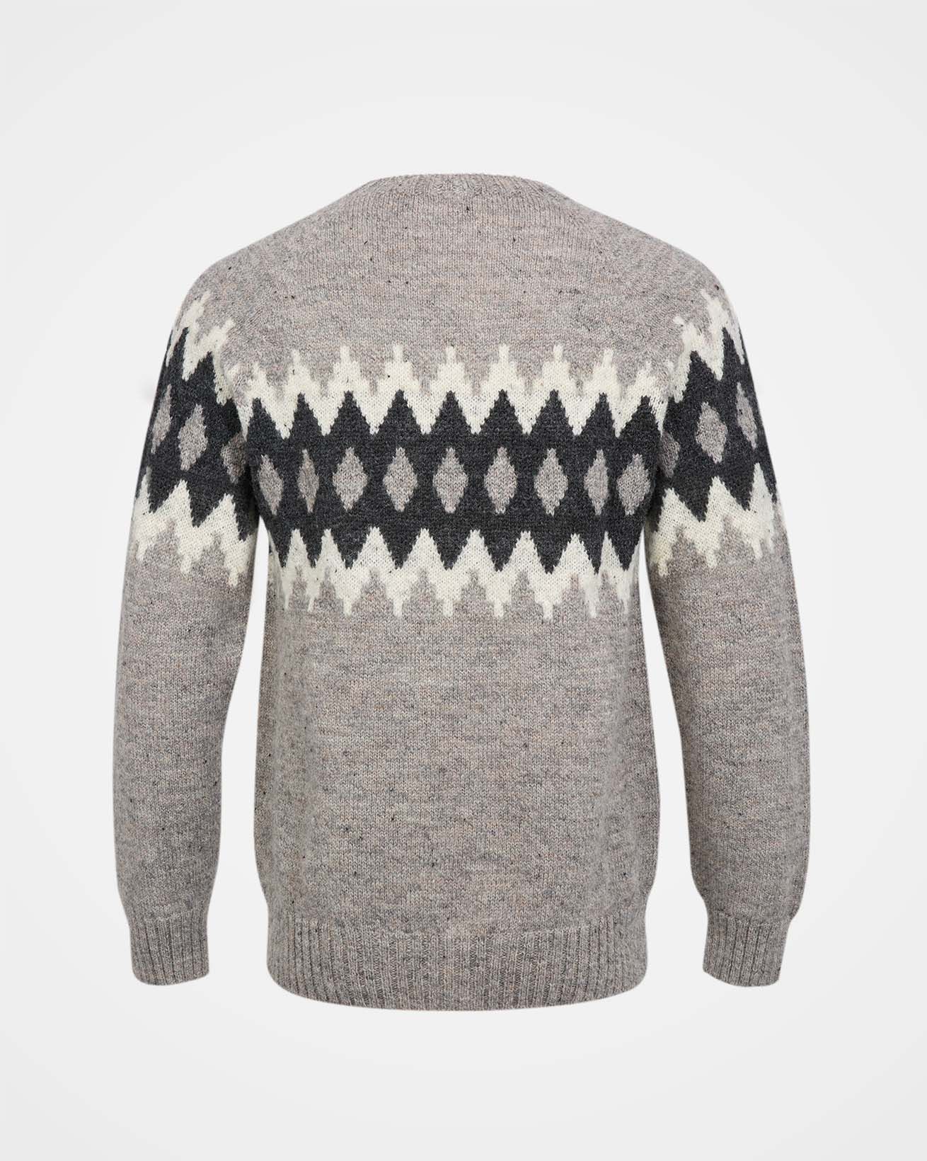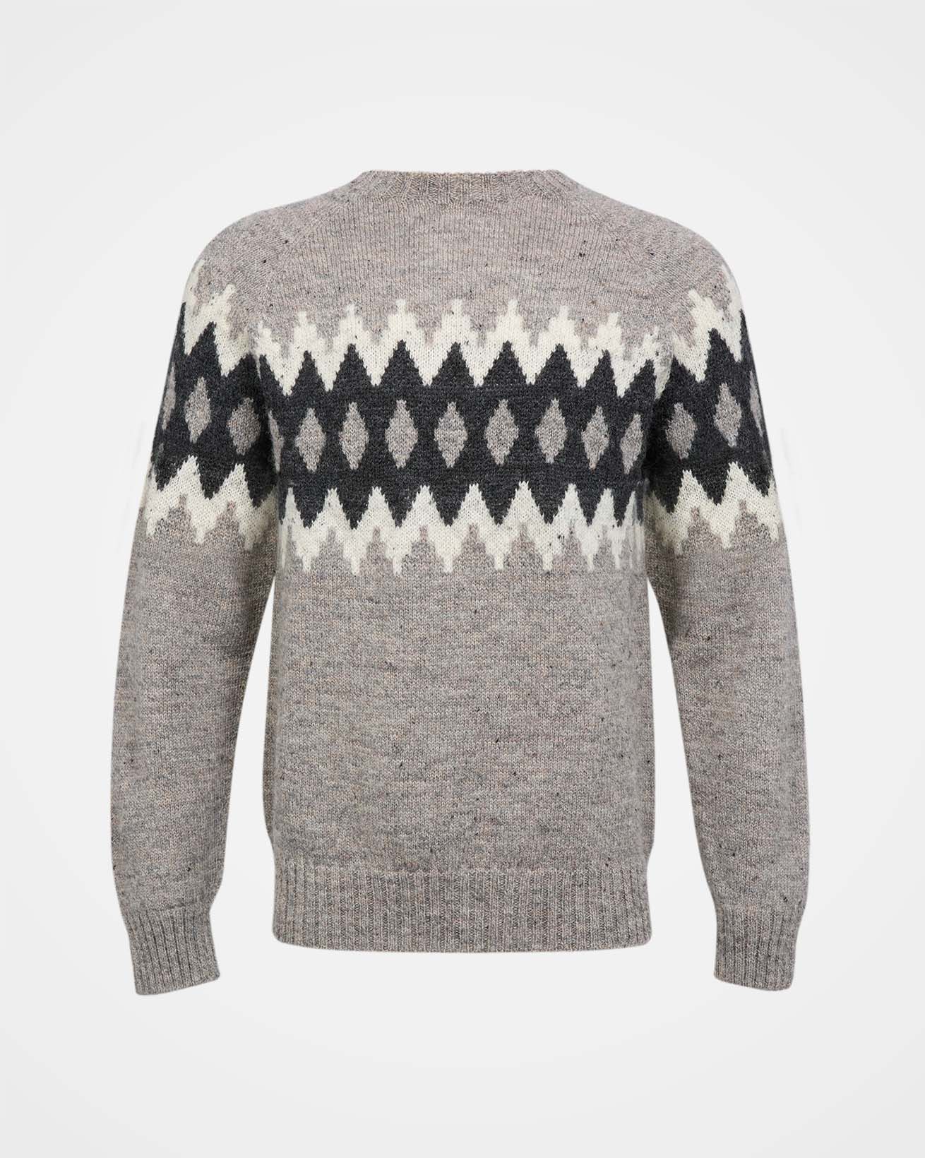 Crafted from British wool, this jumper features a classic crew neckline and a diamond and chevron pattern across the chest and sleeves. The ribbed neck, cuffs, and hem ensure a comfortable fit, showcasing timeless British craftsmanship.