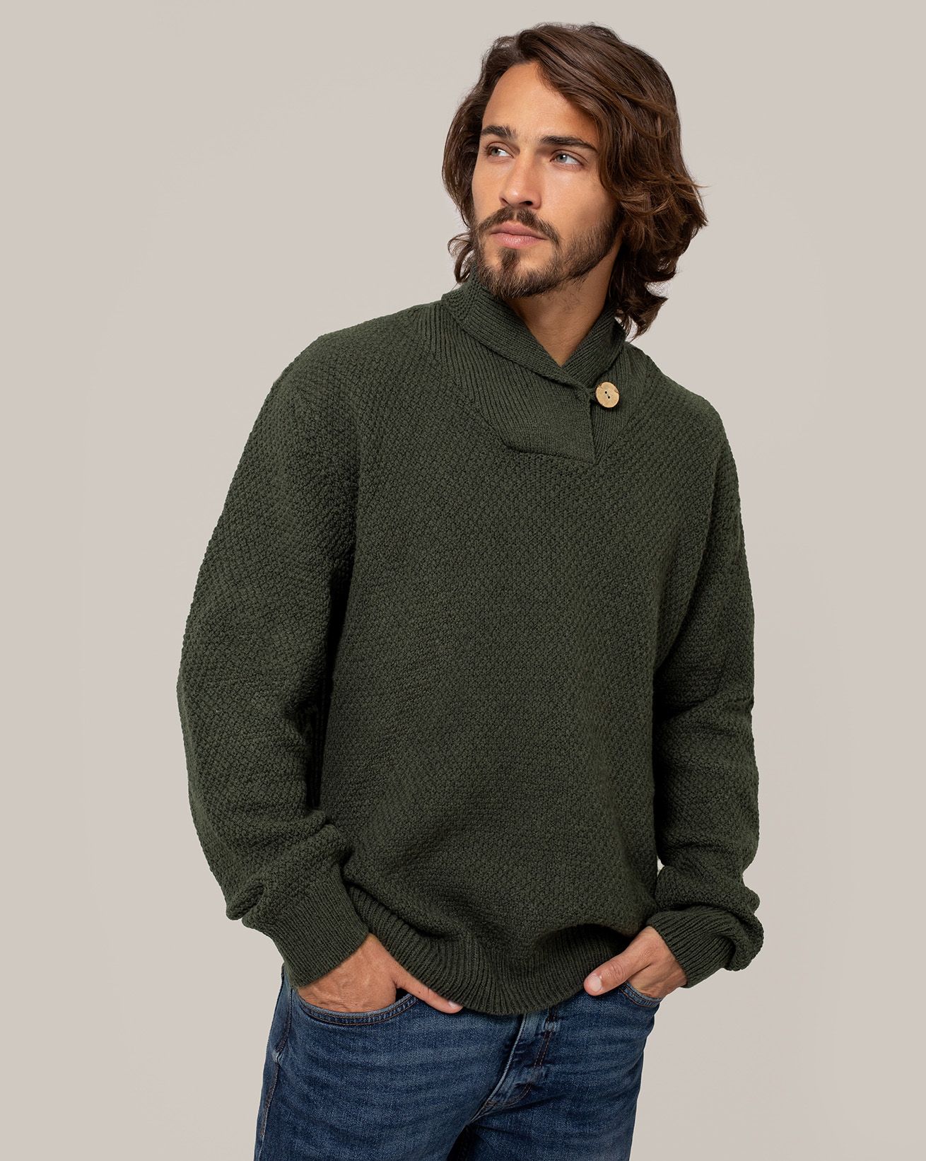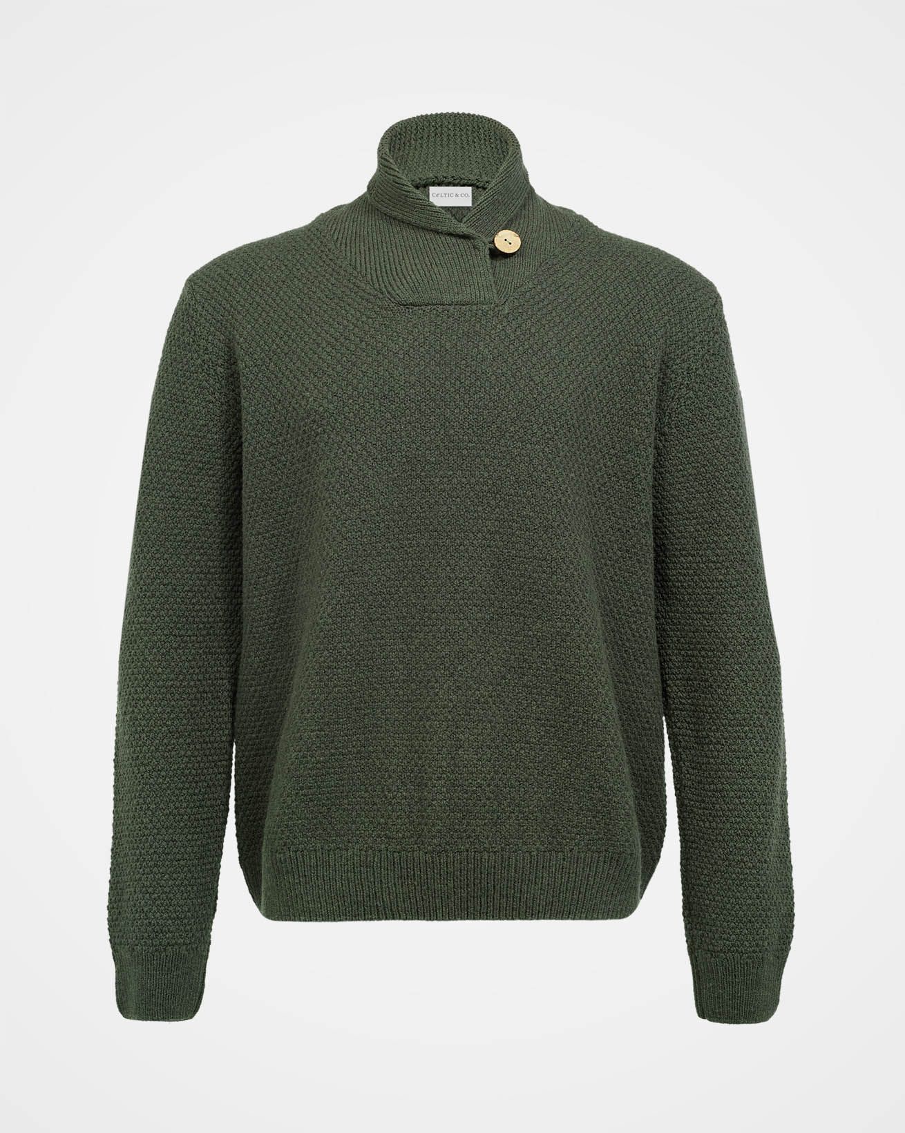 Celtic & Co Men’s Buttoned Shawl Collar Jumper | Khaki