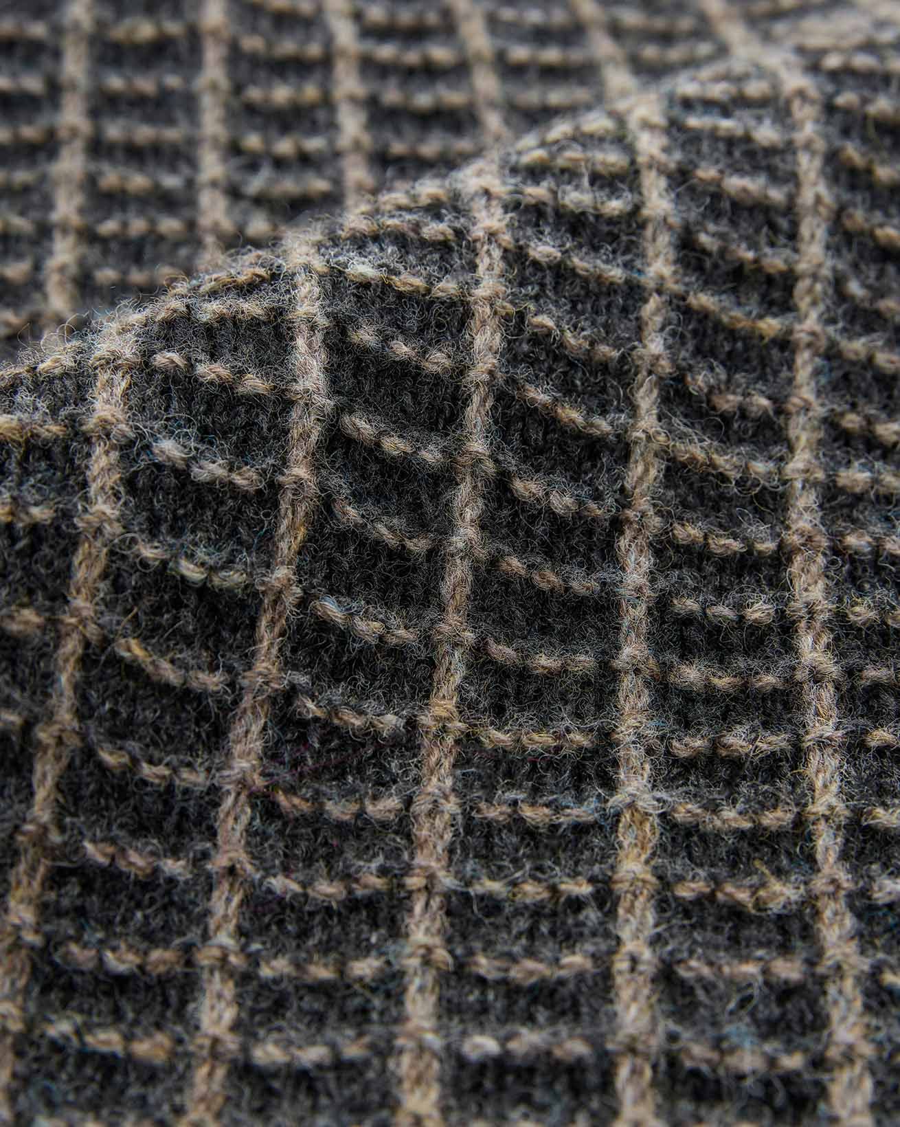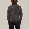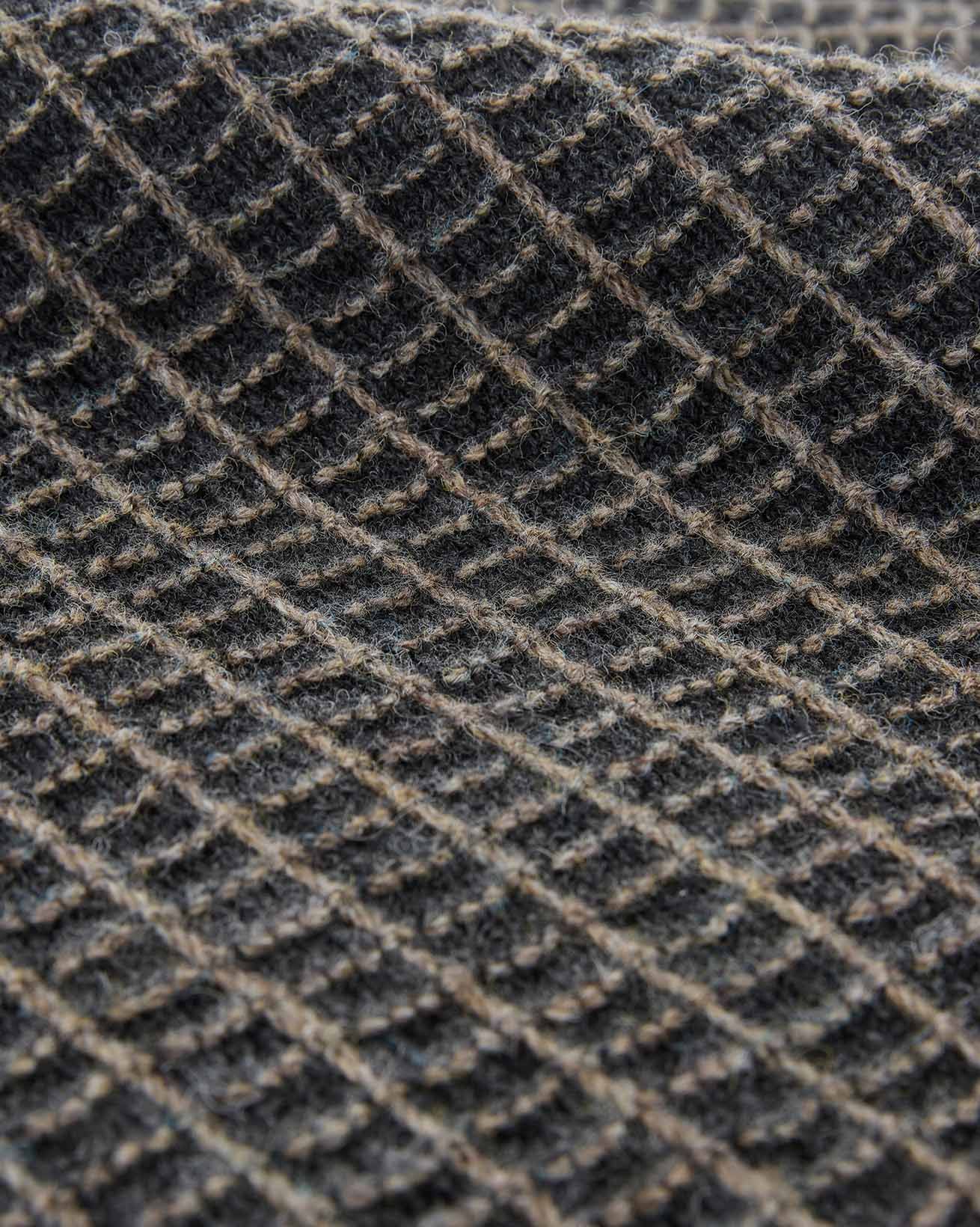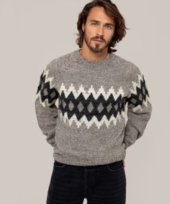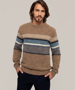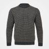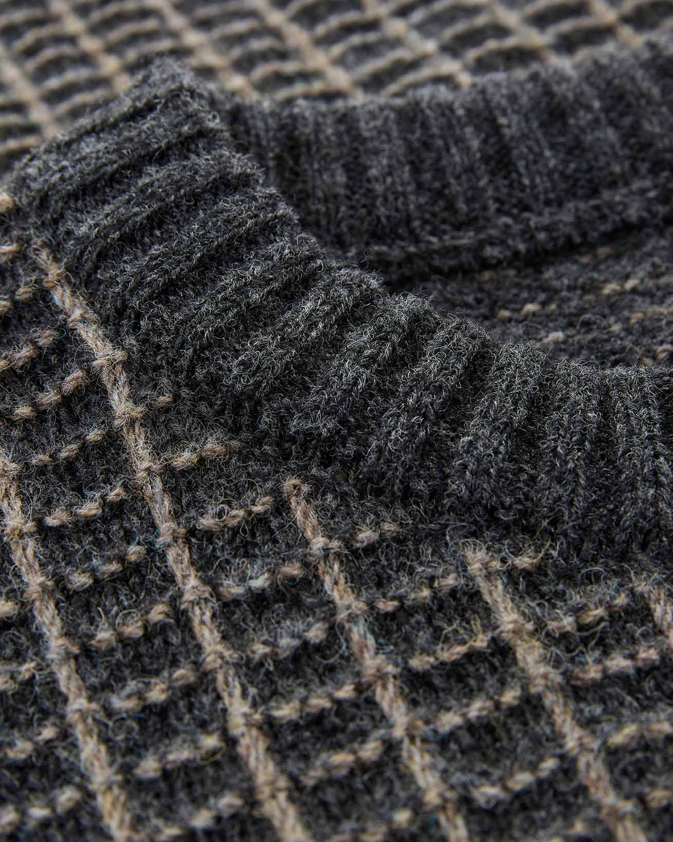This 100% wool jumper features a crew neckline and a unique contrasting tuck and reverse stitch pattern. Ribbed cuffs, neckband, and hem ensure a comfortable fit, offering a distinctive look.