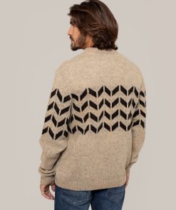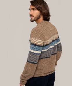 This 100% wool jumper features a crew neckline and a unique contrasting tuck and reverse stitch pattern. Ribbed cuffs, neckband, and hem ensure a comfortable fit, offering a distinctive look.