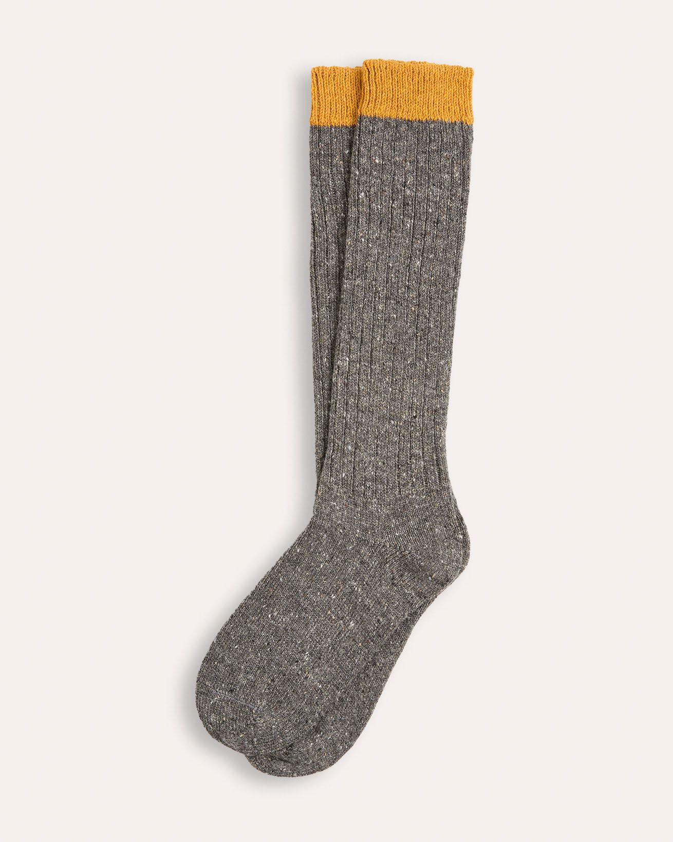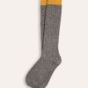 Created in a new blend of Donegal wool, silk and cashmere, this pair features a chunky ribbed structure for lasting shape retention and solid trims for a colourblocked effect.