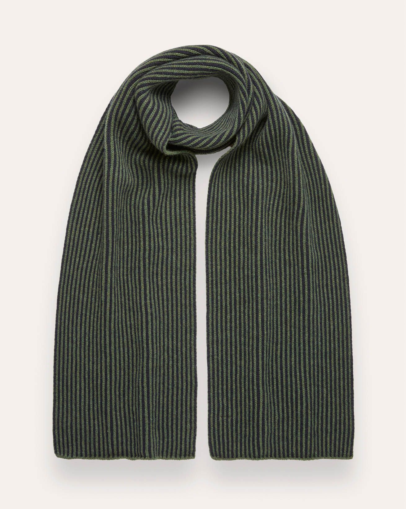 Made in Britain using pure lambswool, this men’s scarf features a vertical two-colour stripe design for a refined touch. Soft, warm, and easy to pair with the matching beanie and gloves for a complete seasonal set.