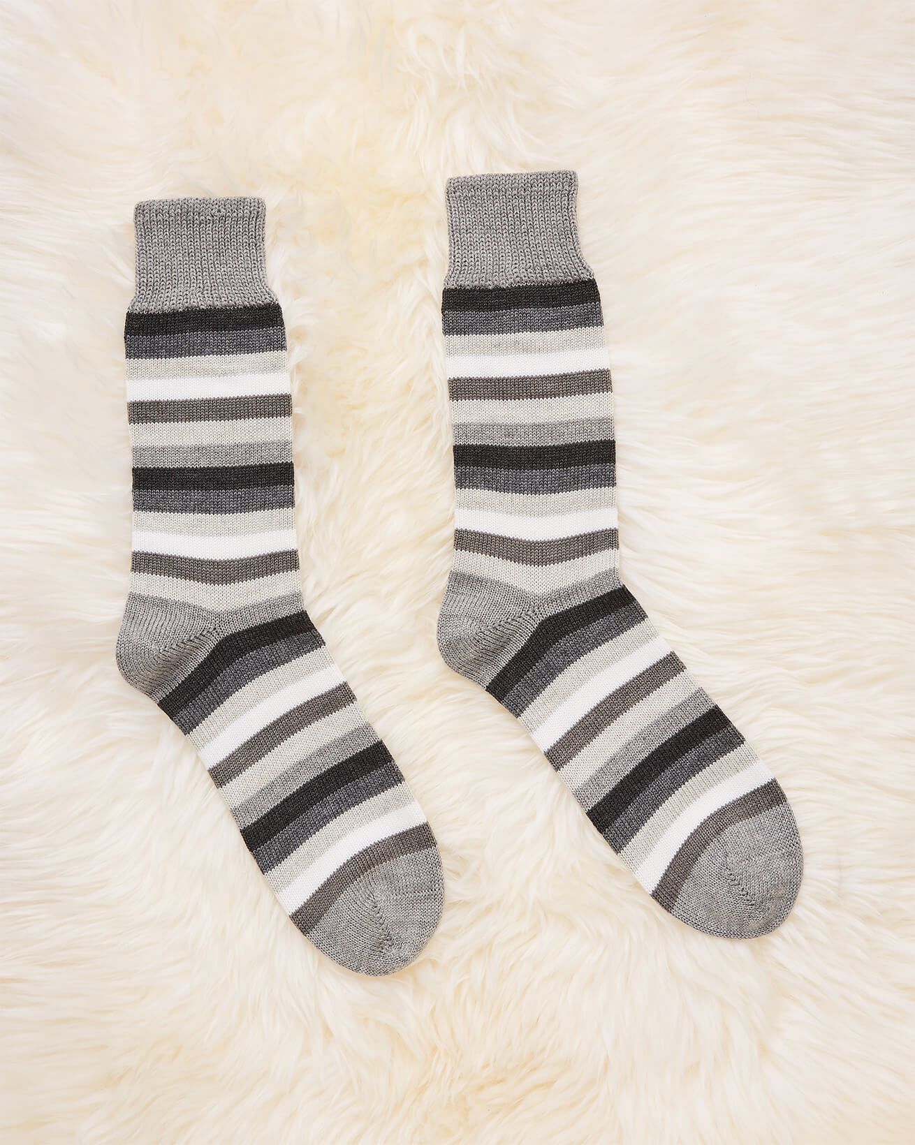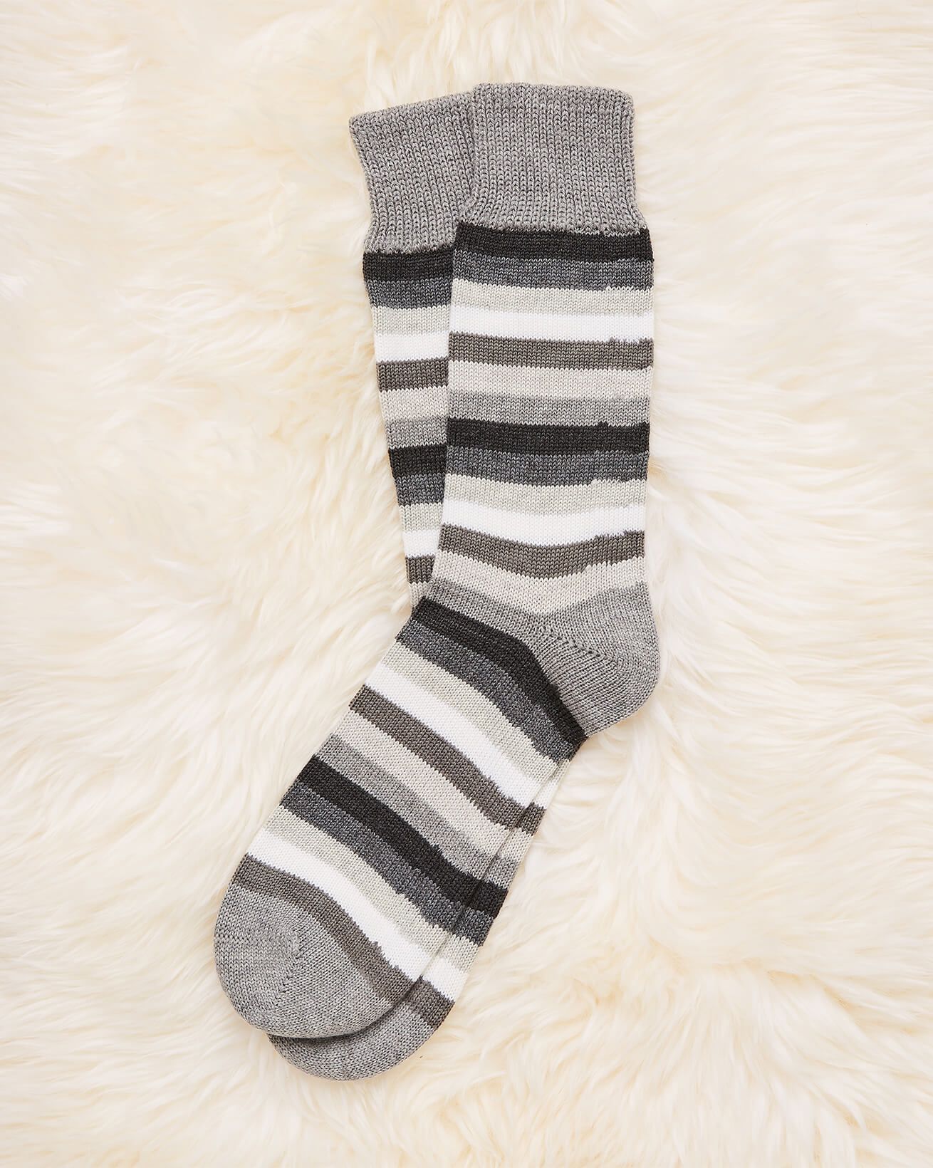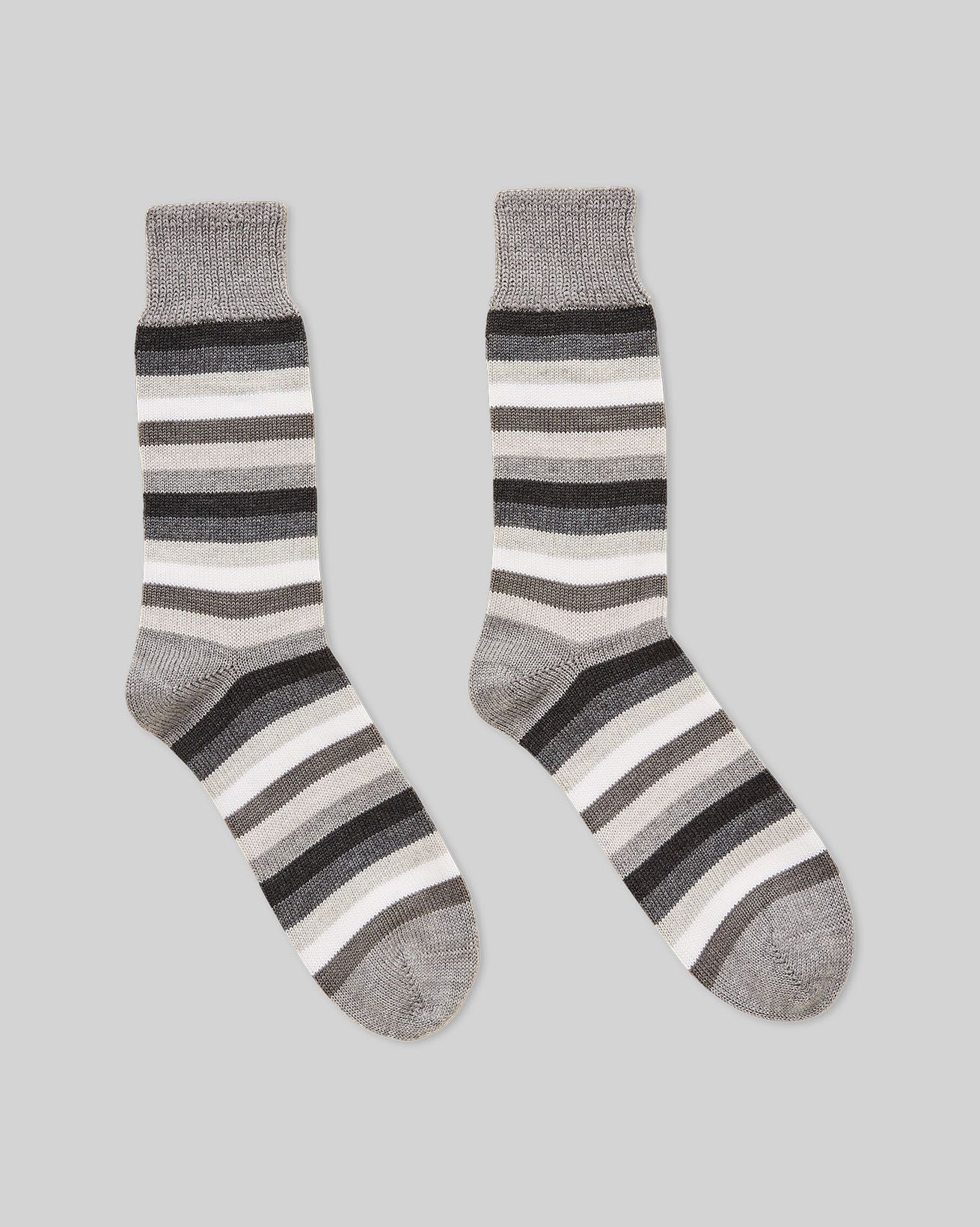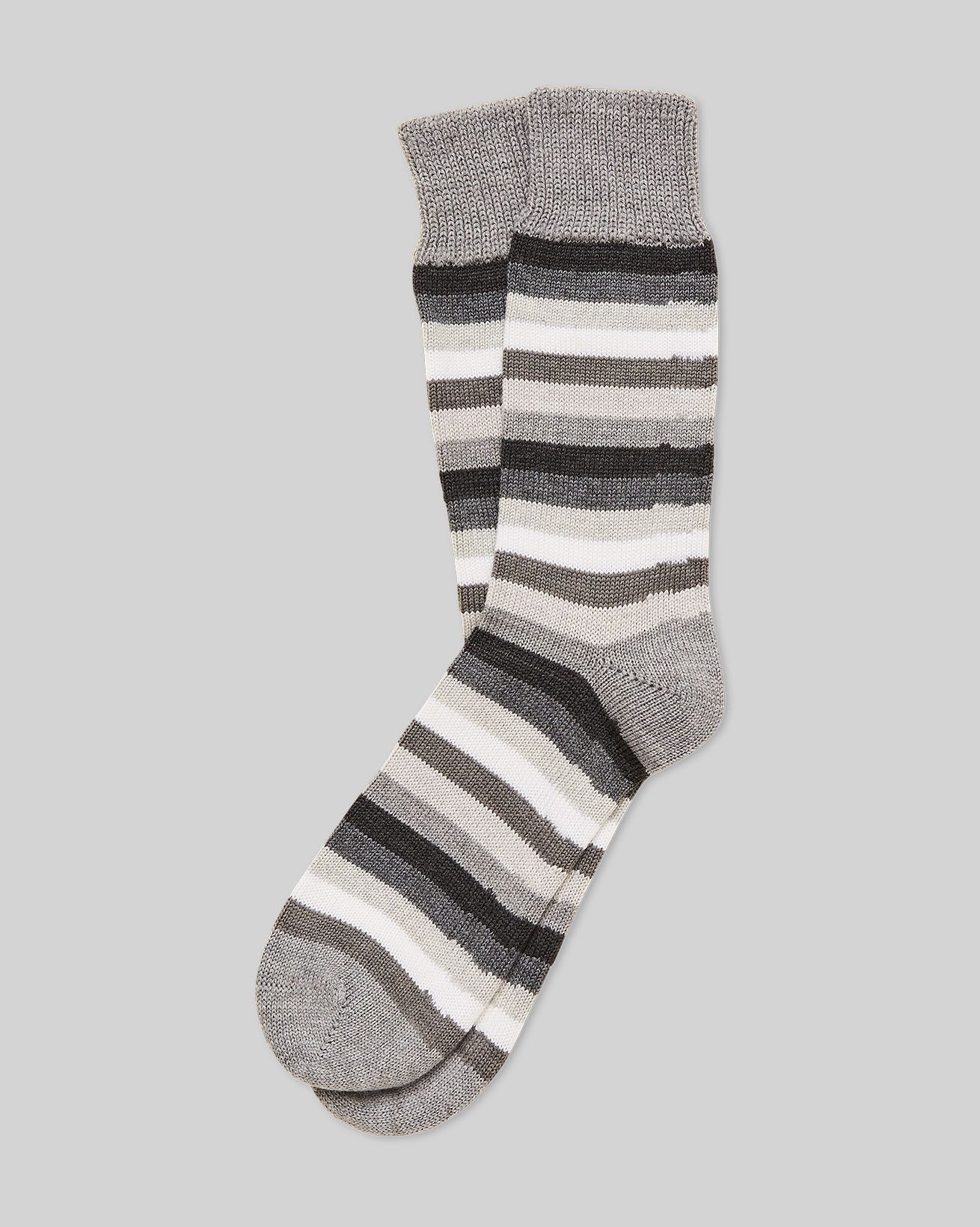 This versatile pair is knitted in a blend of merino and cotton, providing plenty of natural warmth, comfort and breathability with a lighter feel than 100% wool socks. The all-over stripe is accented by contrast blocks of colour at the heel, toe and cuff.