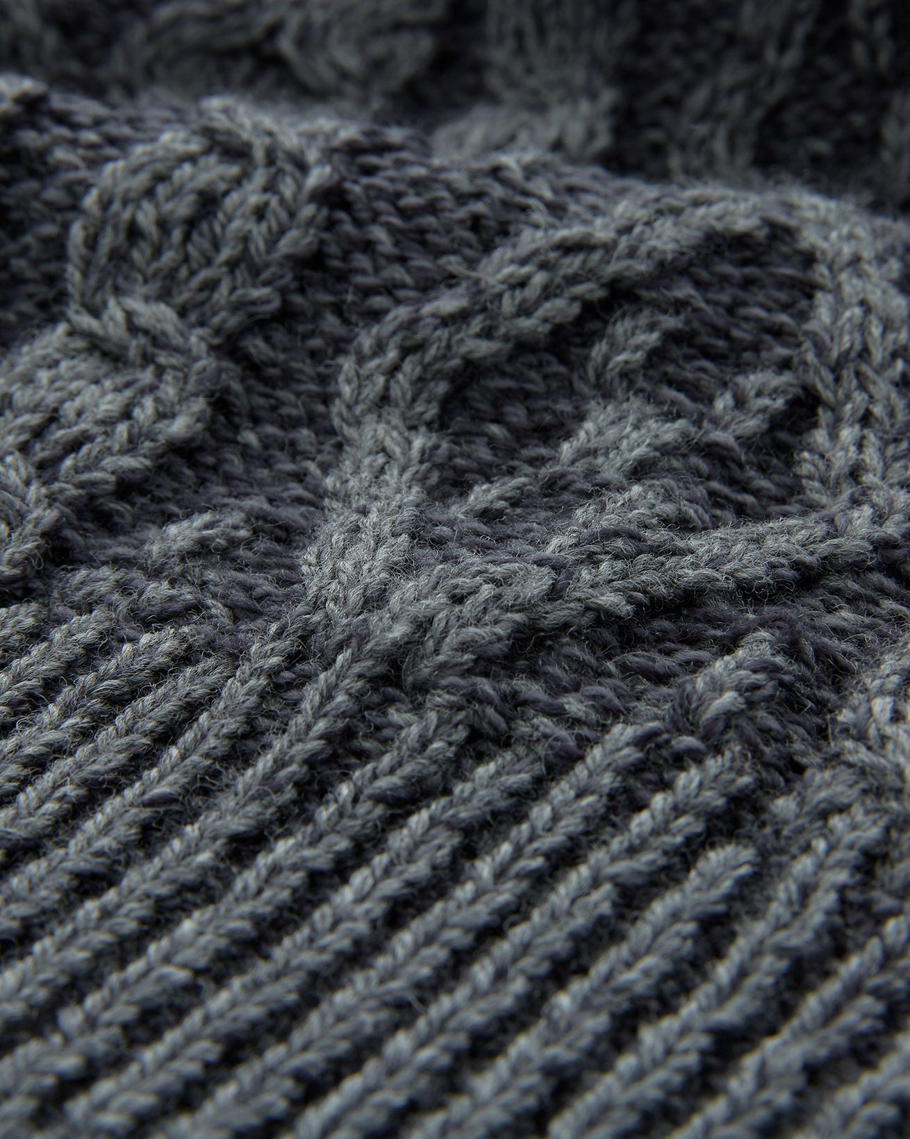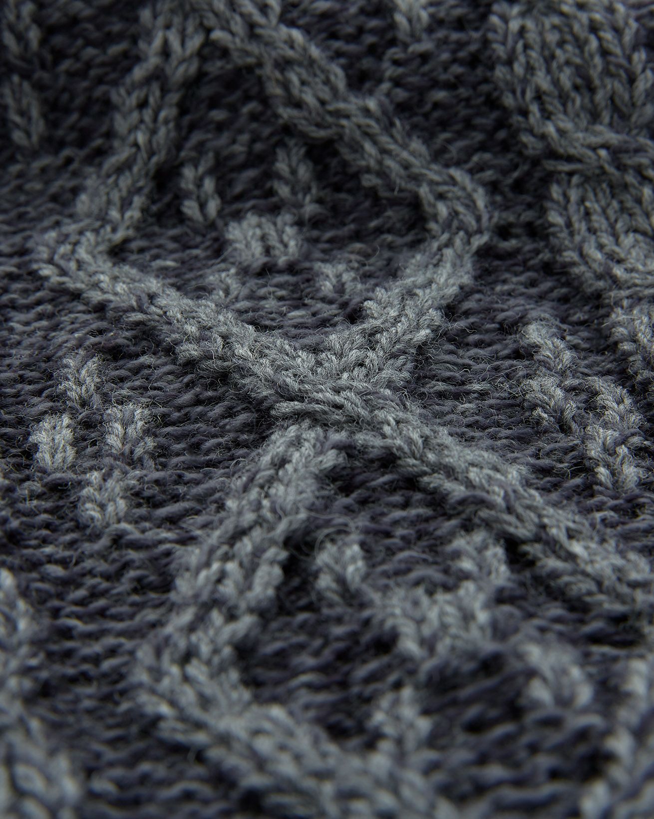 Soft and warm, the classic Aran cable design of this jumper features a modern twist. We’ve incorporated a plated knitted technique which uses two shades of yarn in light and dark colours, stitched in a way that gives the knit a two tone appearance, adding something special to a timeless staple. Subtle details include ribbing at the crew neckline, cuffs and hem.