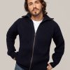 The ultimate in all-season layering, this zip-through style is knitted in pure Merino with a chunky rib structure that will keep its structure through wash and wear. The funnel collar can be zipped all the way up or folded down, and the antique-effect brass zipper adds extra interest through the centre front.
