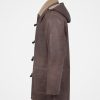 We’ve crafted it in rich leather with an antiqued finish and short, curly wool at the interior. Authentic horn toggles secure through the front with the benefit of an additional zip to keep the elements out.
