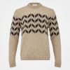 A wool jumper is a winter essential, and this classic shape featuring a chevron design running across the chest and sleeves will never go out of style. Fuss-free details such as the ribbed collar, cuff and hem, paired with a crew neck make for a timeless, casual sweater to be pulled on whenever the weather gets chilly.