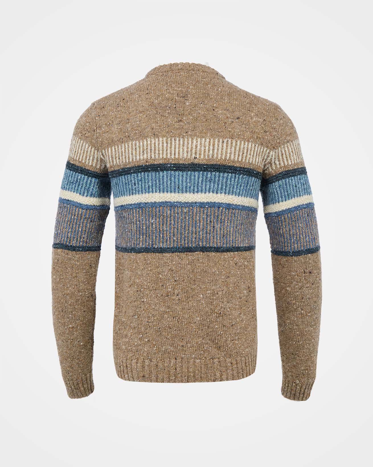Made from real Donegal yarn, this wool jumper features a textured stitch pattern in contrasting colours running across the chest and sleeves. Created in a classic shape, we’ve opted for a crew neck plus a ribbed collar, cuffs and hem. It’s designed to be pulled on, worn with everything and well loved.