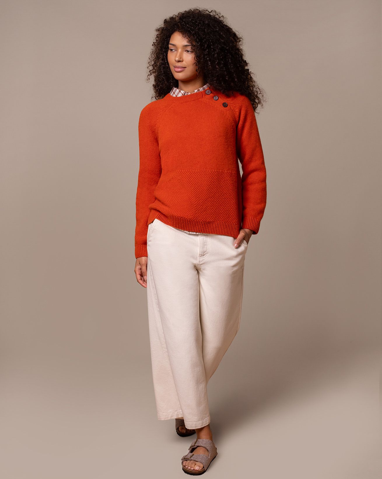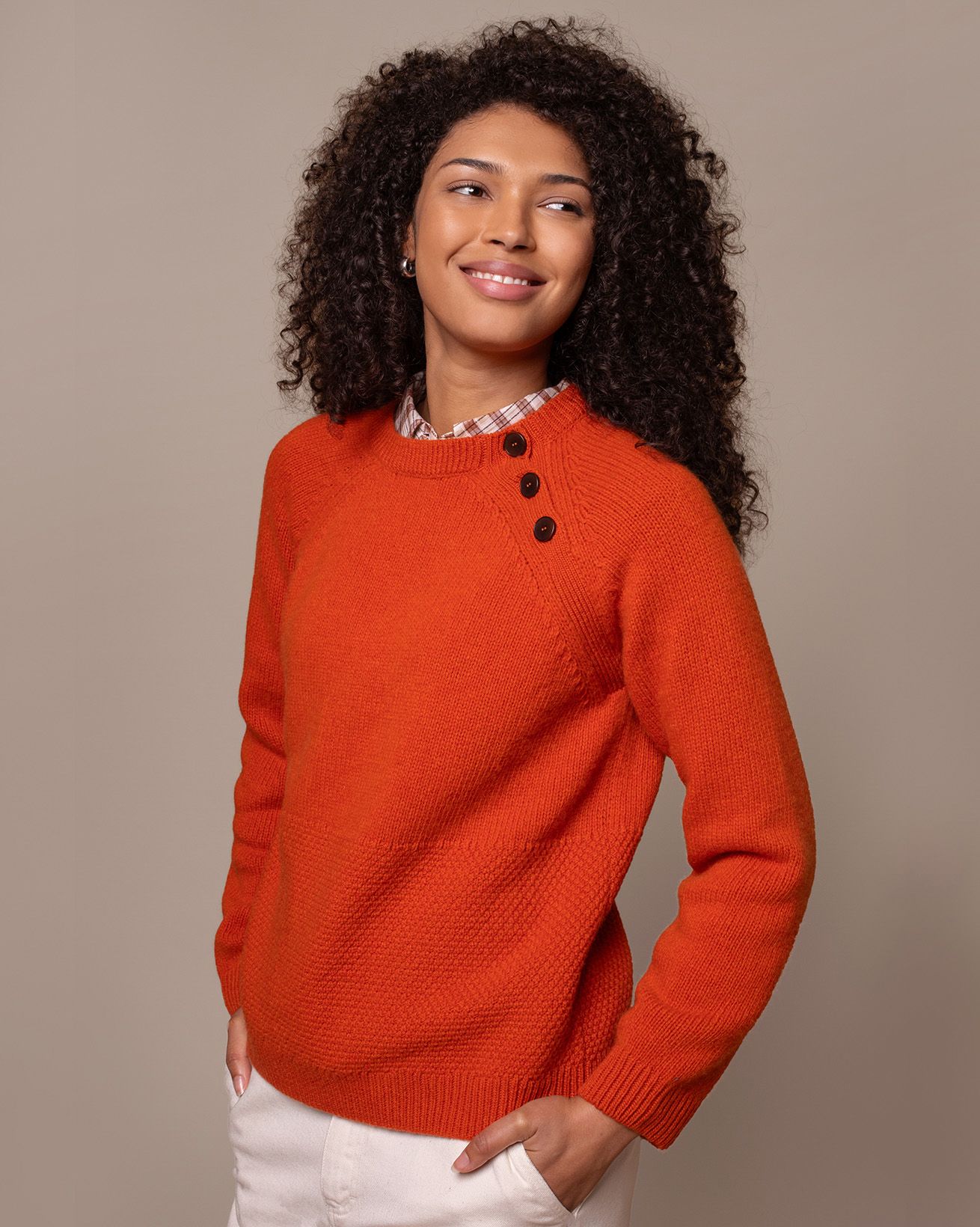 With a classic crew neckline and raglan sleeves, this jumper is both timeless and comfortable. Its corozo buttons add a touch of character to an effortless style.