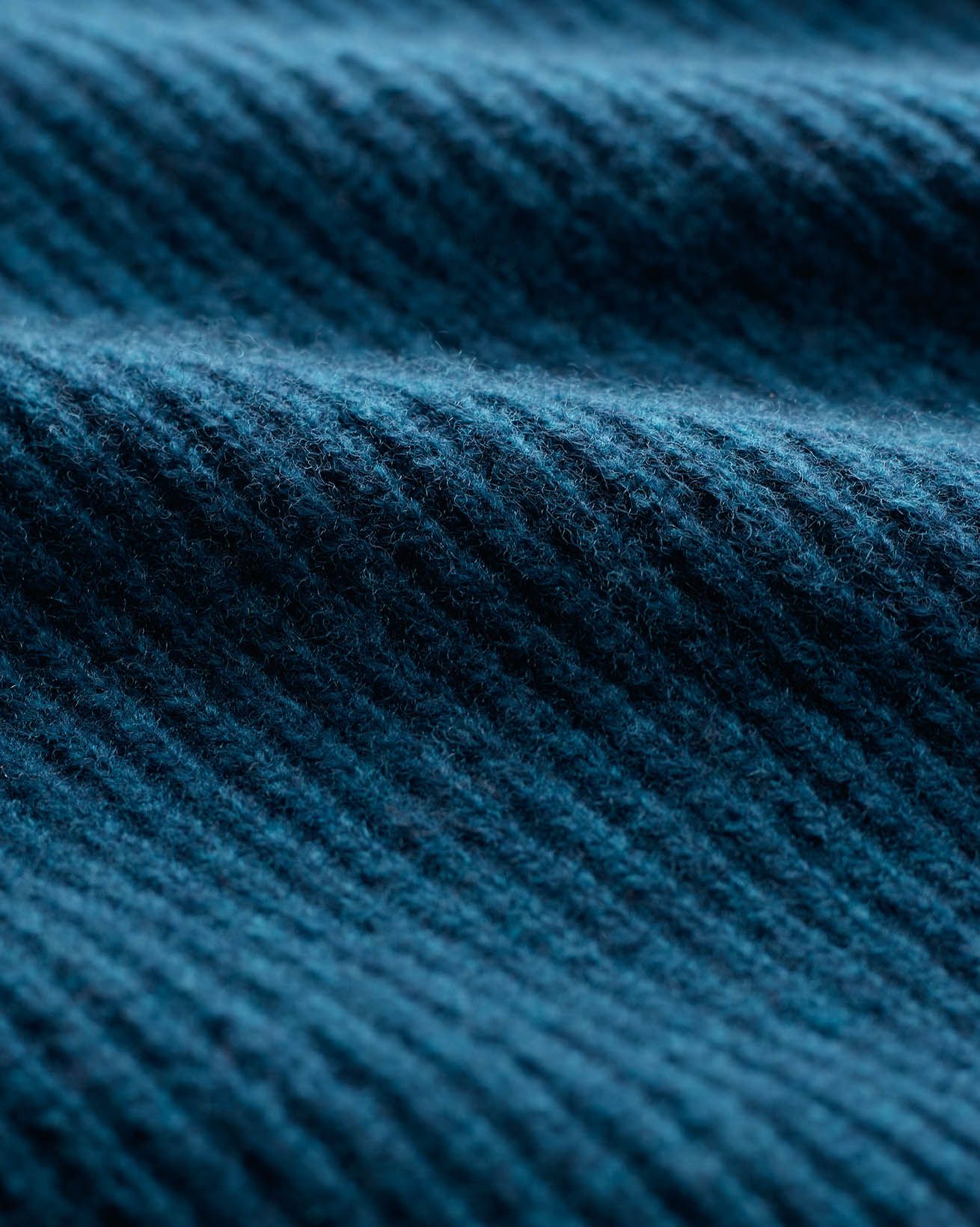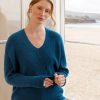 This V neckline jumper features a cocoon shape that gently drapes at the back. The half cardigan stitch rib adds texture, creating a piece that combines comfort with a timeless design, perfect for everyday wear.