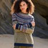 This crew neckline jumper boasts a boxy fit, highlighted by a beautifully crafted Fair Isle patterned stitched yoke detail. It combines traditional craftsmanship with modern comfort, making it a timeless addition to your knitwear collection.