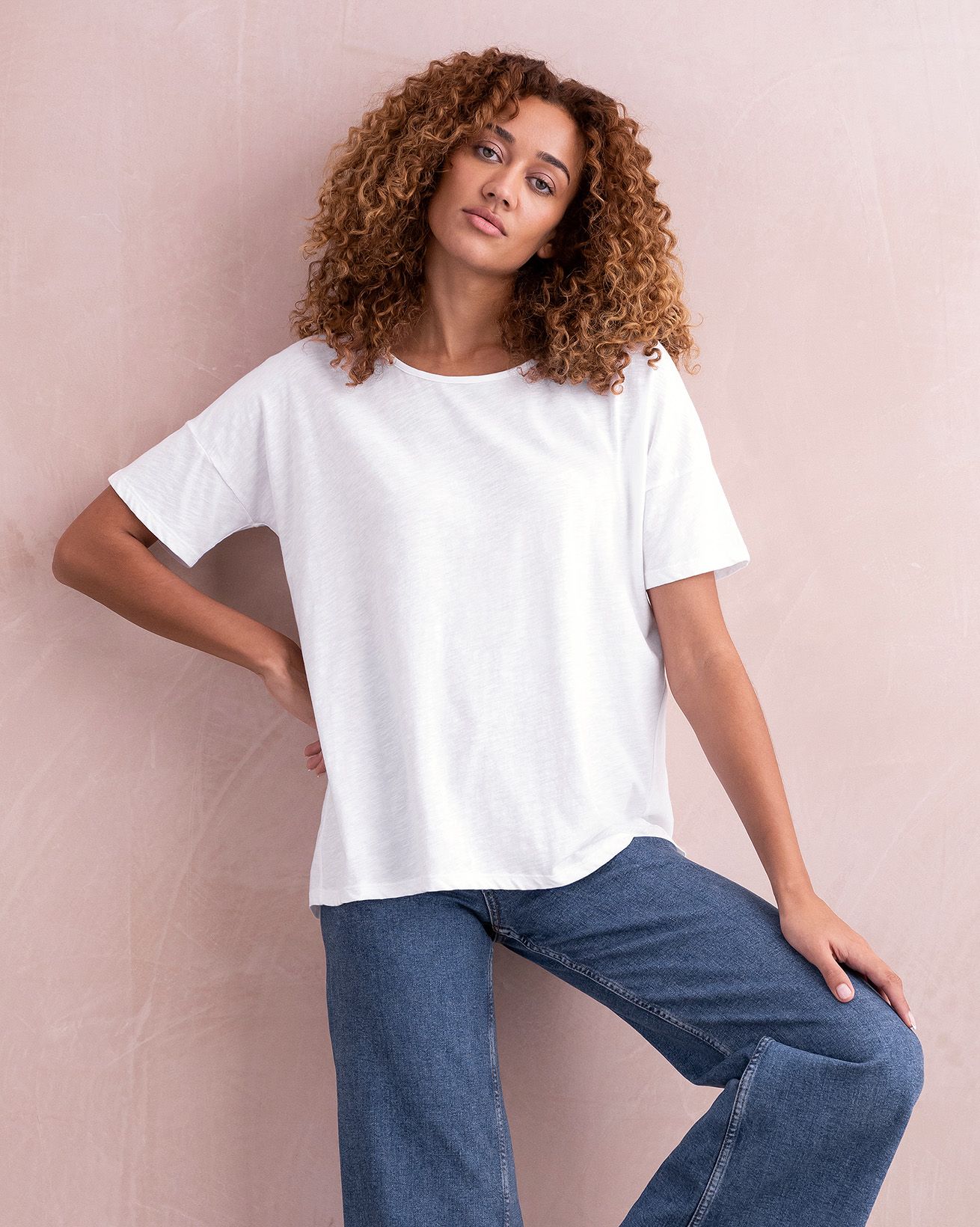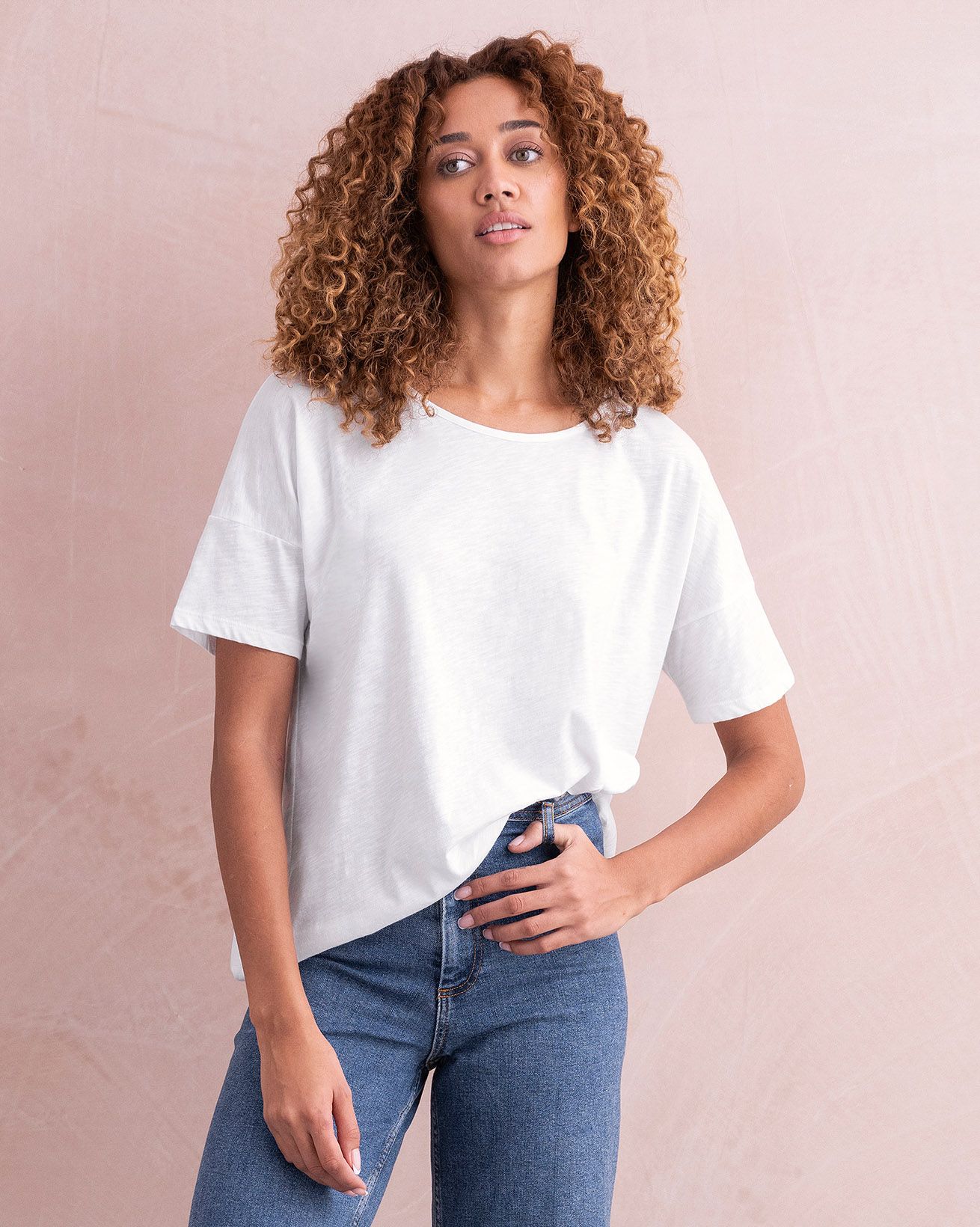 Elevate your casual style with our Drop Shoulder Drape T-Shirt. This relaxed fit jersey T-shirt features a drop shoulder and boxy fit body with a curved hem which is slightly longer at the back, for a contemporary laid-back feel. Made from soft lightweight slub organic cotton jersey, it’s a perfect choice for those who value easy styling.
