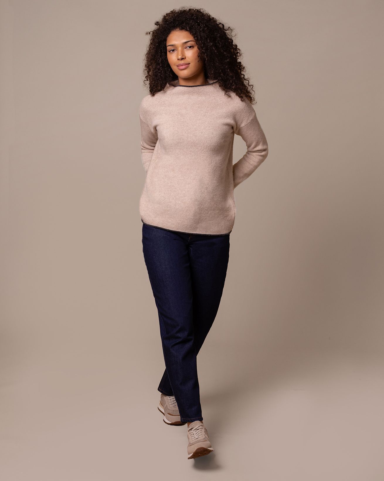 Our designers have used premium natural materials to create this new funnel-neck jumper, resulting in lightweight softness that could easily rival the silken touch of cashmere.
