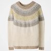 Our designers have used a pretty float-stitch detail to give the curved yoke a little extra charm, while the crew neckline, hem and cuffs are all designed with a purl knit for subtle contrast.