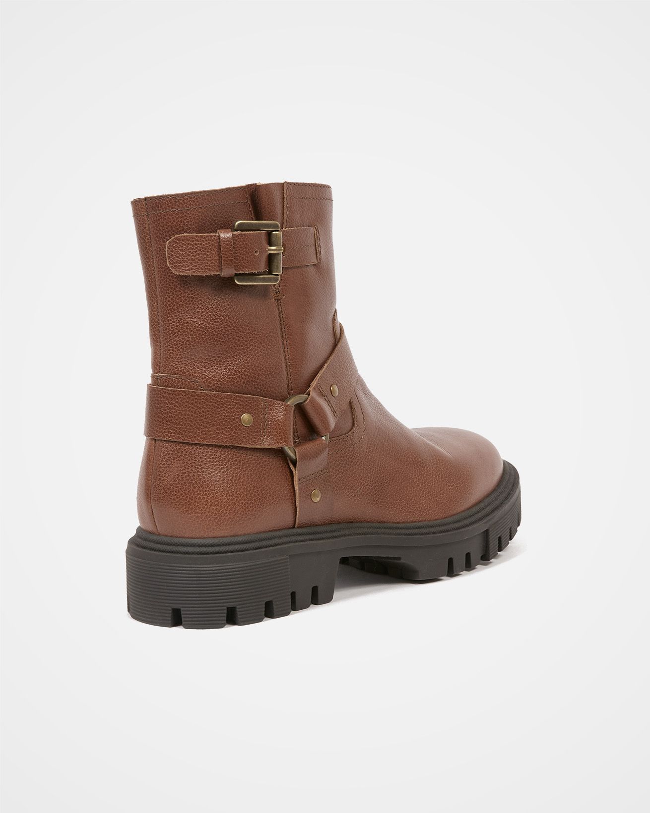 Our Biker Ankle Boots feature a quality leather upper with strap and ring biker detailing. They come with a zip opening for easy wear and are lined with leather, sitting atop a chunky sole for unrivalled durability.
