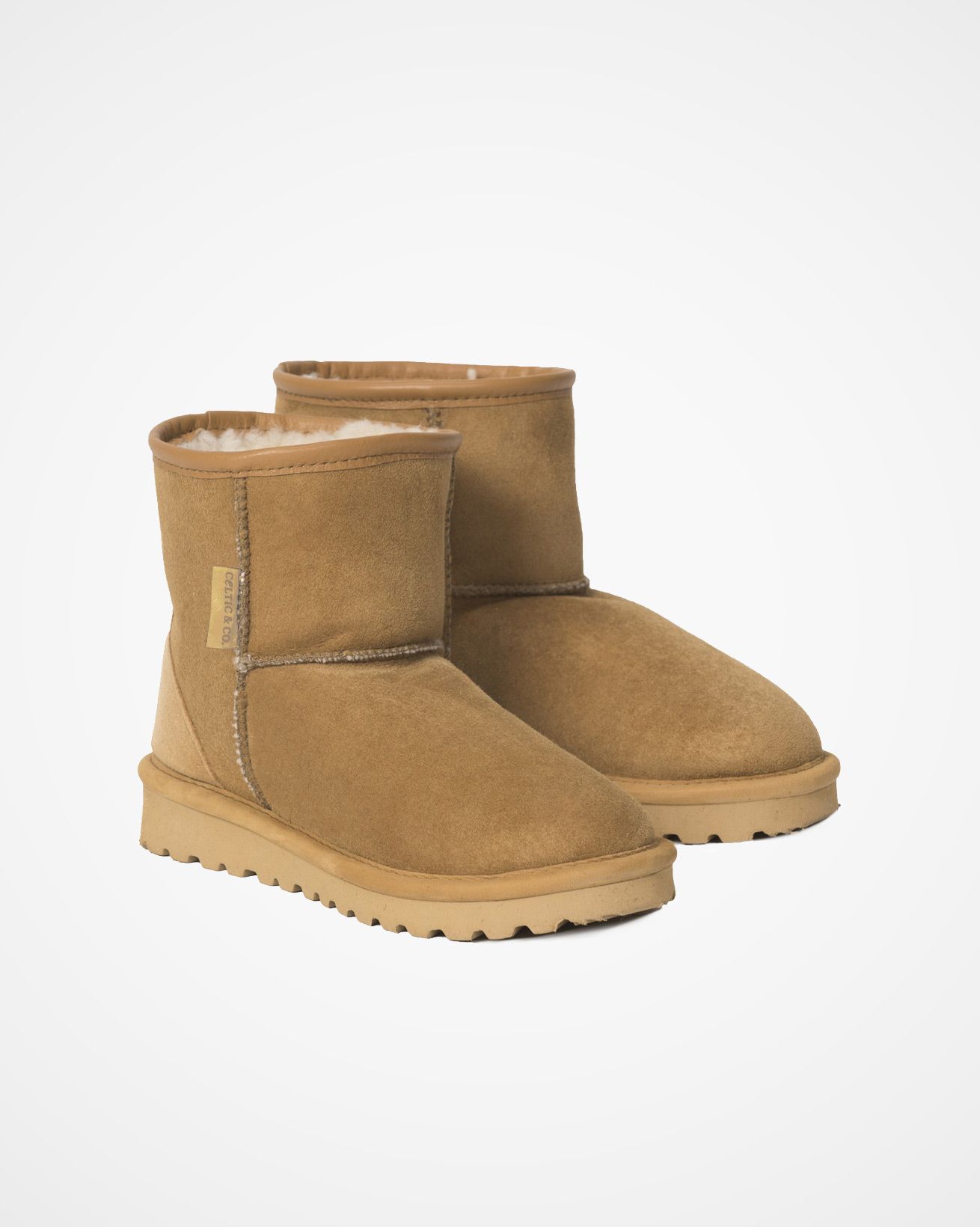 We’ve cropped the length of our standard boot to bring you a pared-back pair that goes with everything. The shortie version of our classic boot epitomises style, resilience and cosiness with its 100% sheepskin construction, cloud-soft inner, double-stitched seams and leather bound edges.