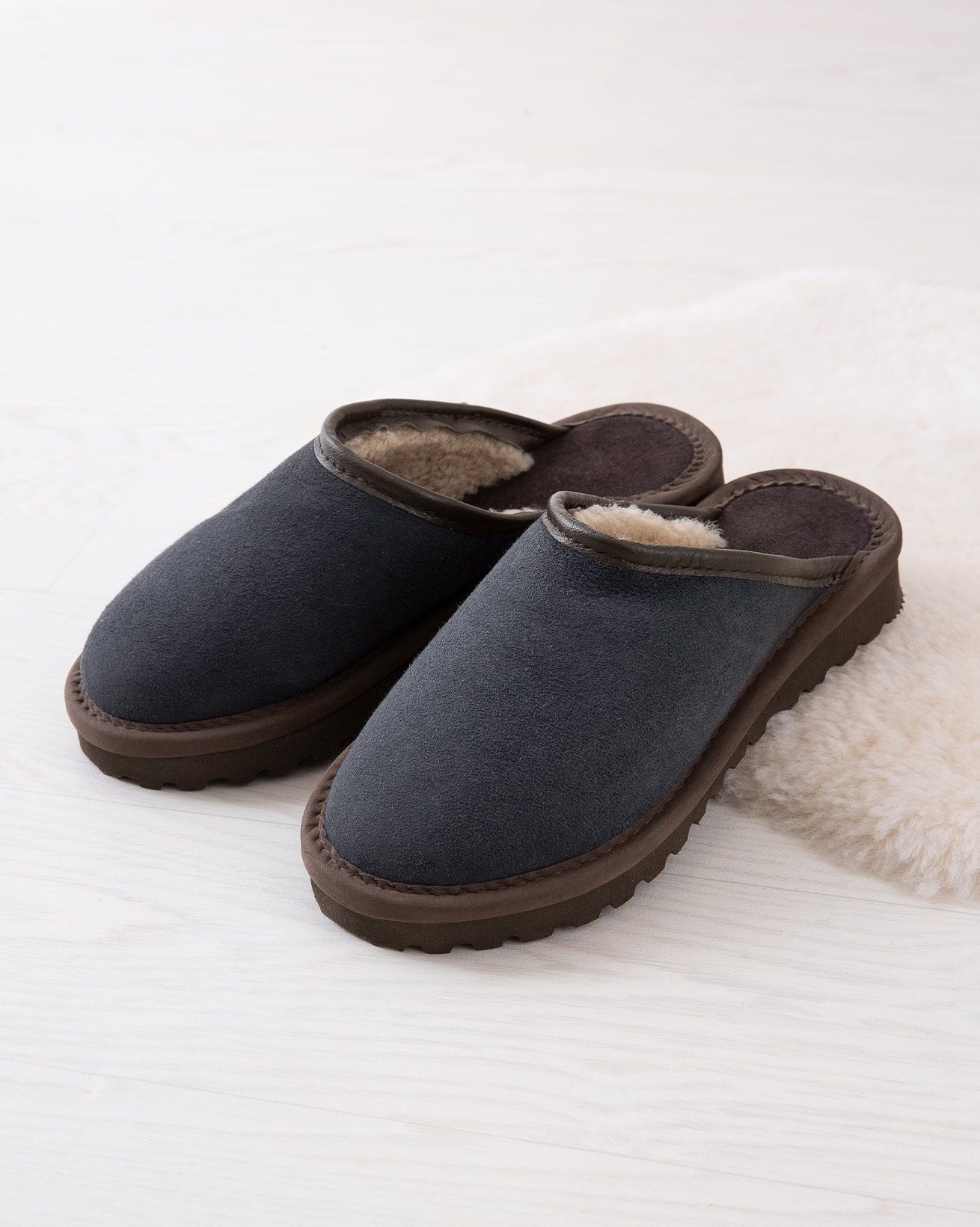 Designed with a slightly raised back for stability as you go about your lazy day, these clog slippers are crafted in 100% sheepskin and set on a hard-wearing sole with a light rise towards the heel.
