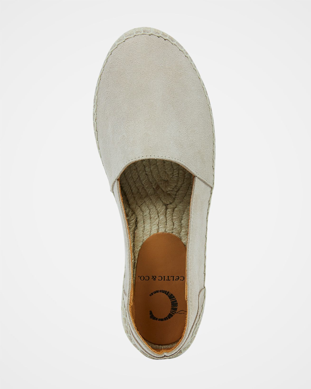 Enjoy summer in style with our Flat Slip On Espadrille. This classic flat summer espadrille slip-on shoe takes you from a day at the beach through to the evening. The traditional plaited jute sole with a rubber outsole is complemented by a suede upper and vegetable-tanned leather lining for a premium feel and finish. A comfortable and stylish choice for your summer wardrobe.