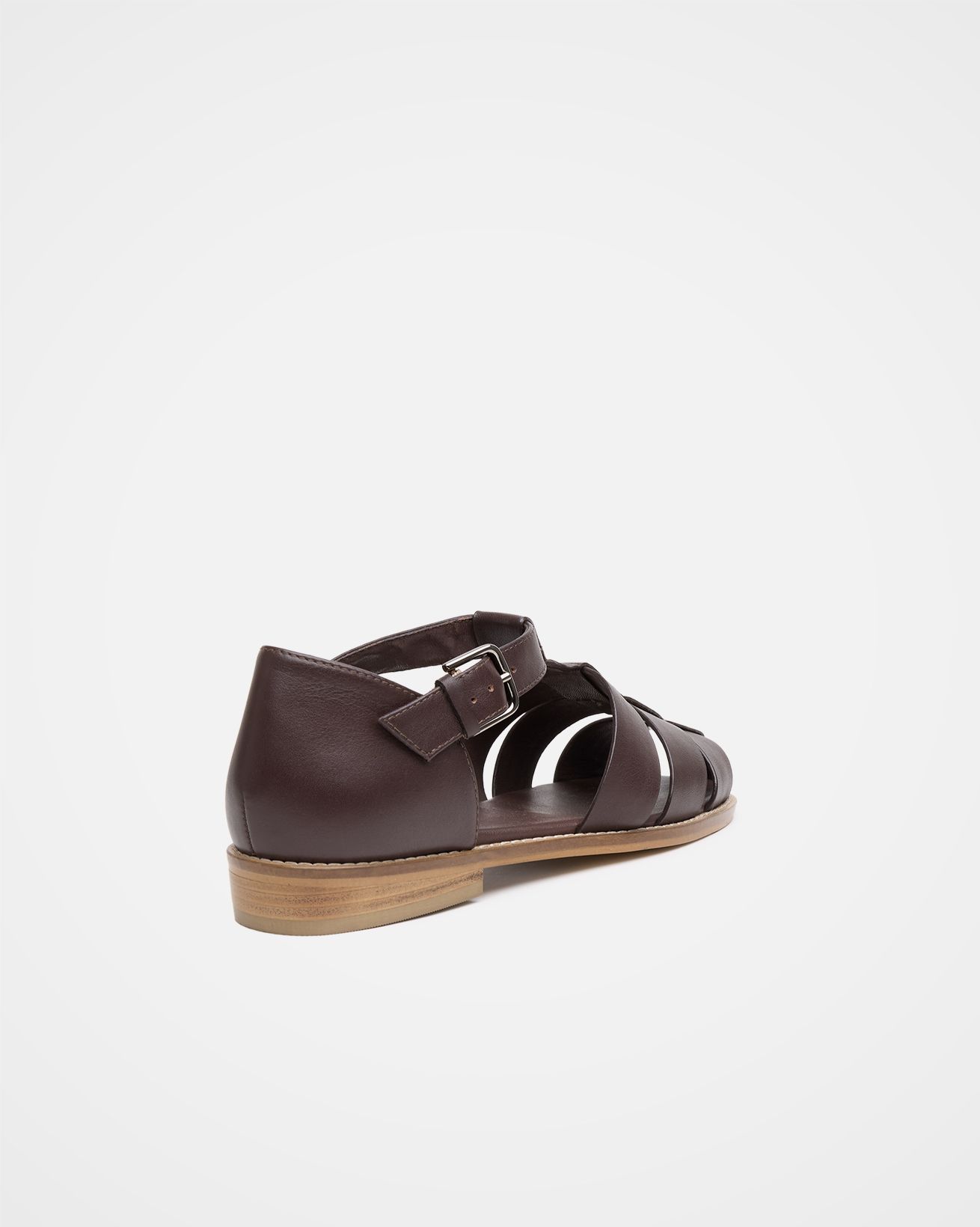 Classic fisherman-inspired sandals with a leather upper and buckled ankle strap. The smart low-heel sole offers a clean, versatile finish, making these sandals ideal for both casual and dressed-up looks.