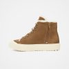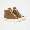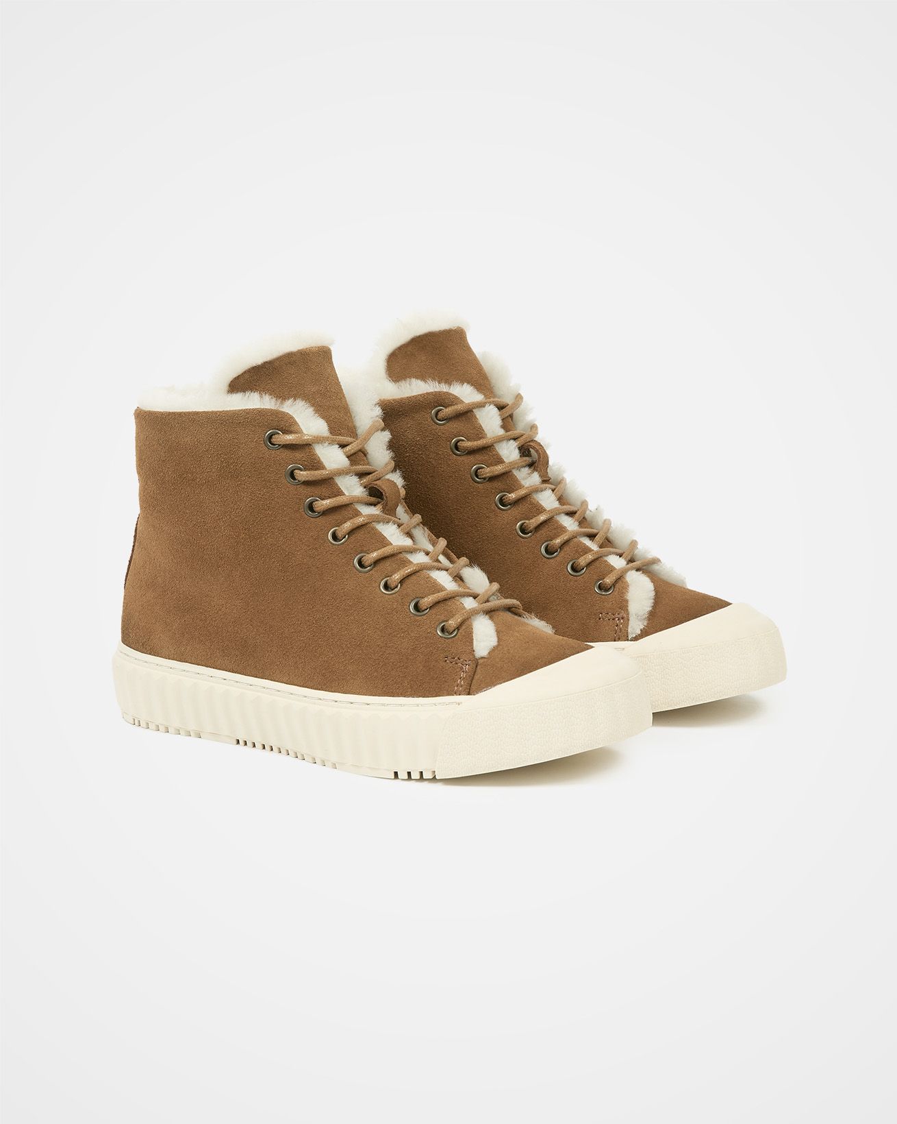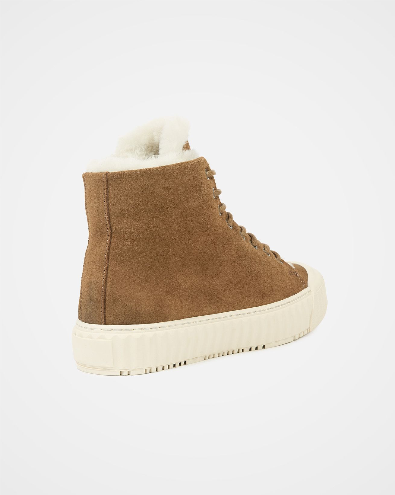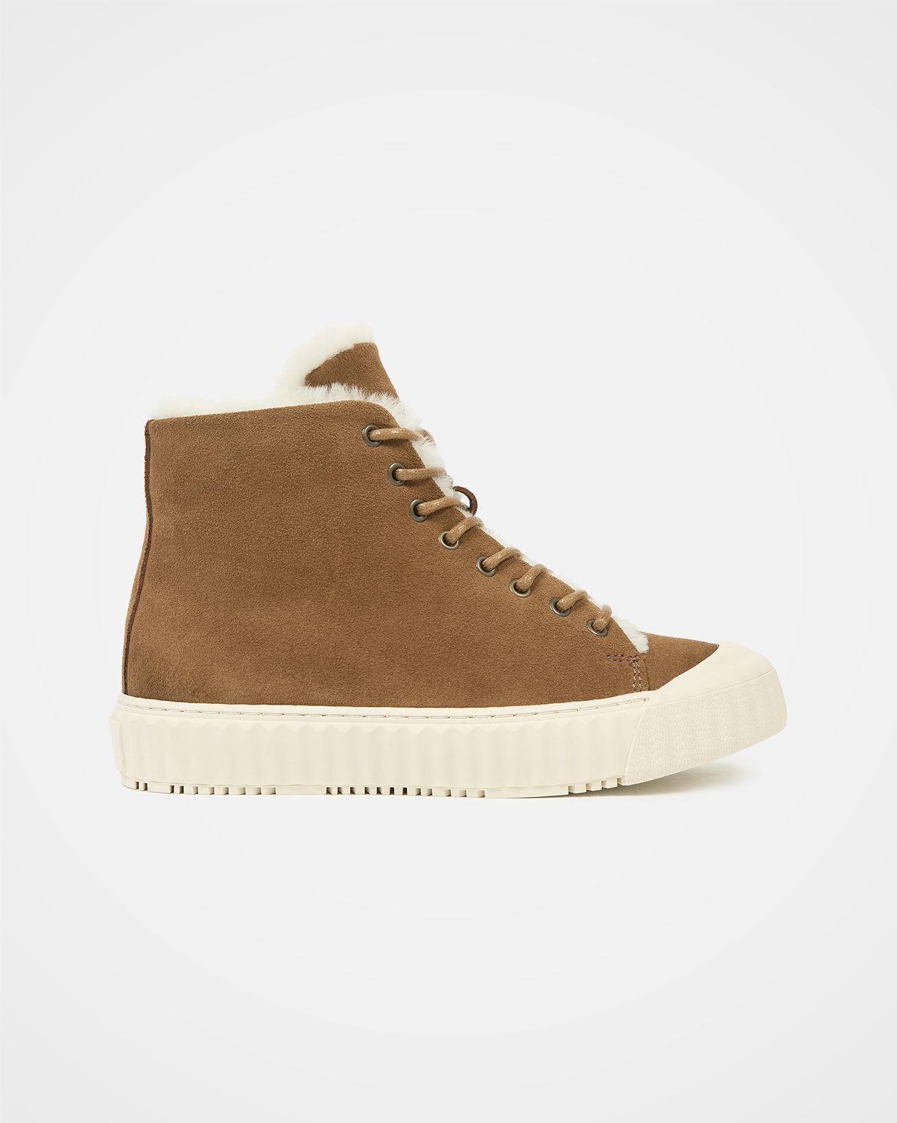 Our Sheepskin high top trainers feature a suede upper, sheepskin lining, and sheepskin insole for warmth and comfort. These trainers feature lace-up styling and a ribbed sole unit with closed toe detail, providing both comfort and durability.