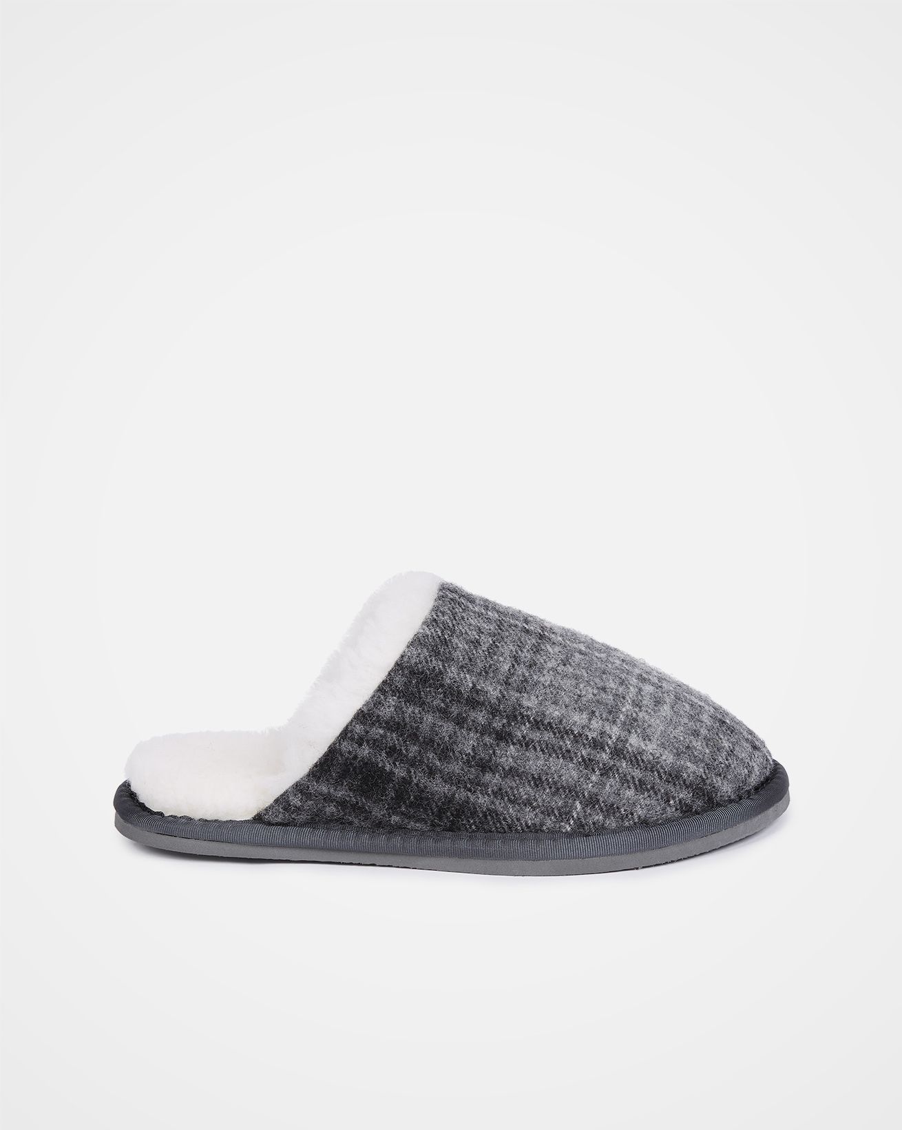 This new addition to our collection of turnback mules features our signature tartan and has a brushed finish for next-level fluffiness!