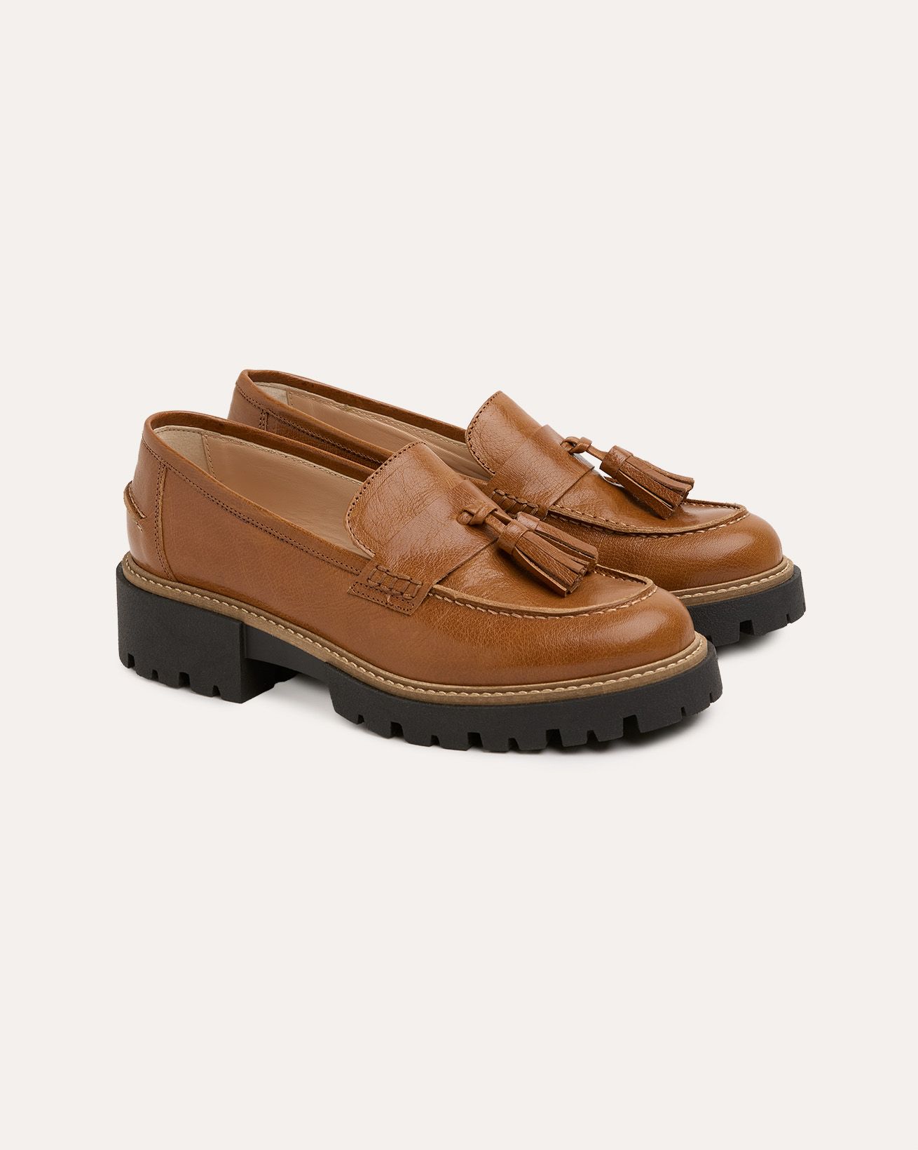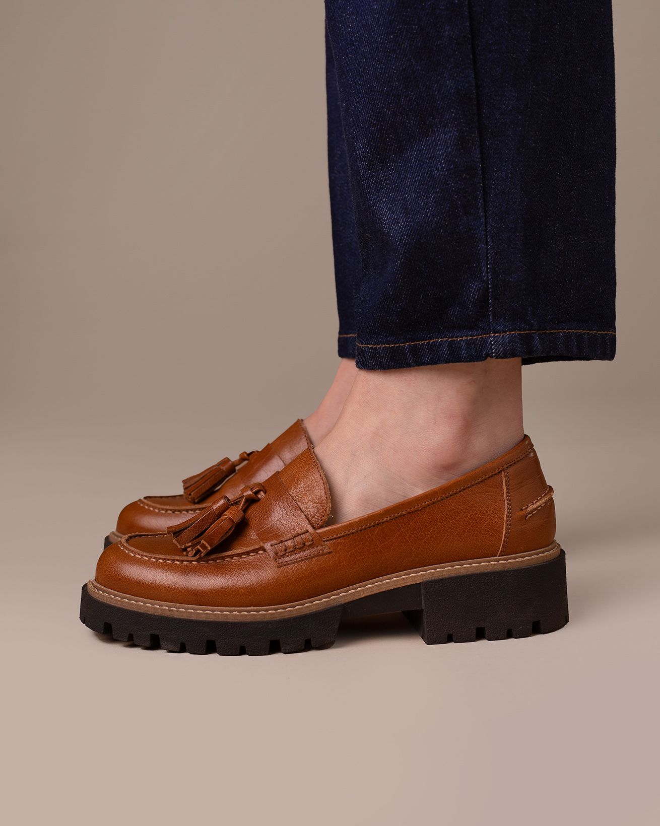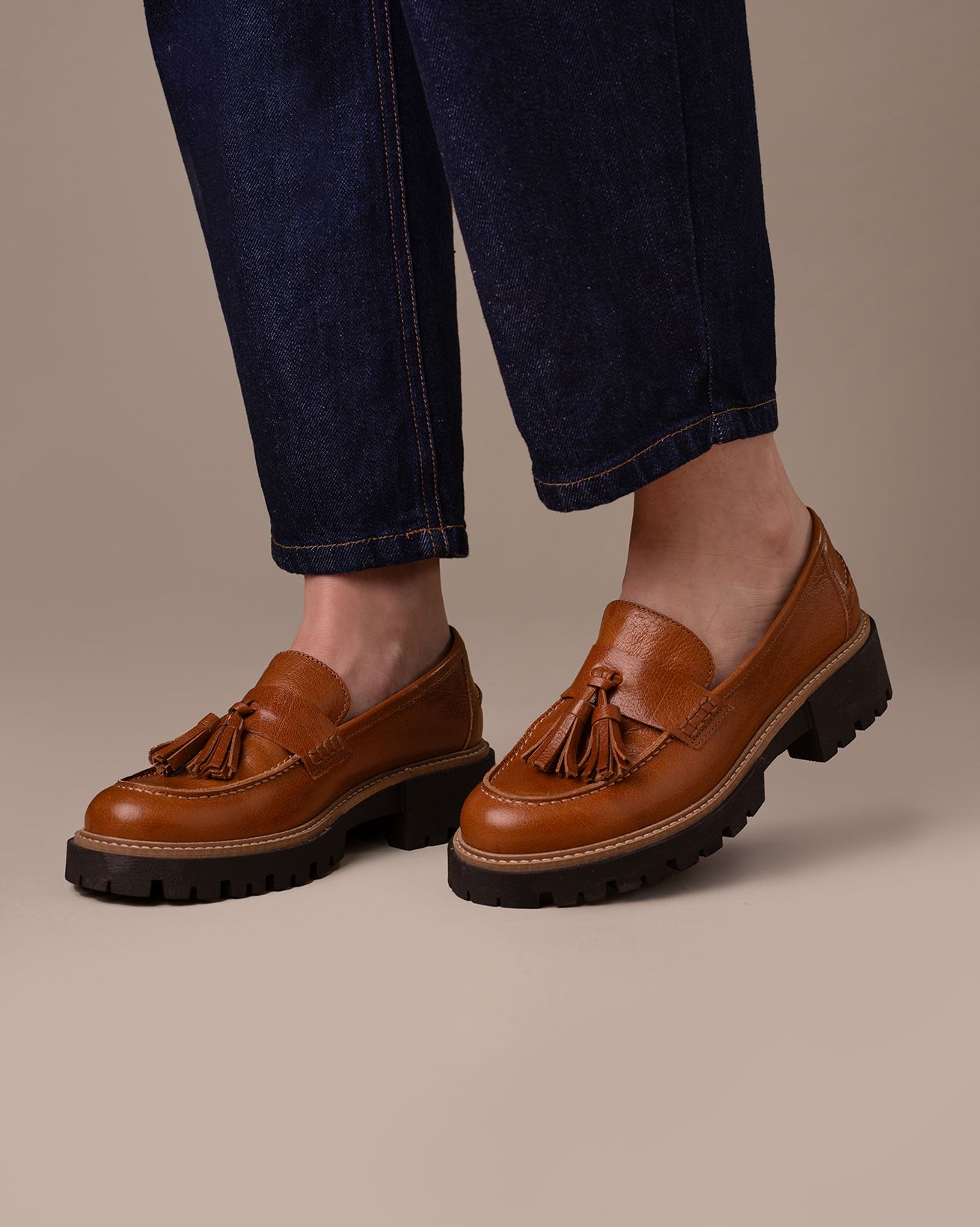 These slip-on loafers feature a Cow Leather upper and full leather lining. They’re designed with classic tassel details, seaming around the toe, and a chunky outsole with a contrast leather welt.