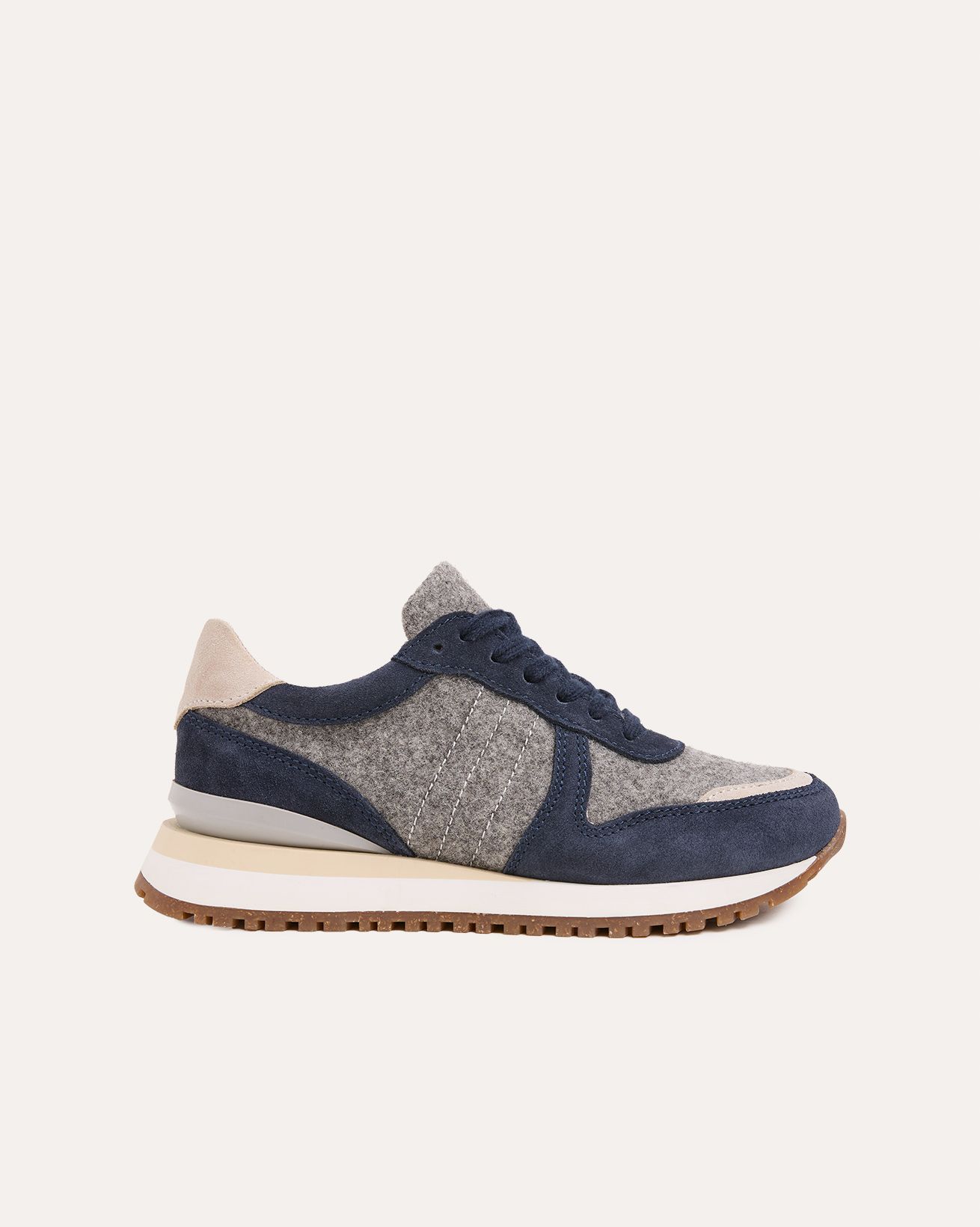 These runner style trainers feature an upper of Cow Suede and Merino Wool. They are lined with a nylon terry material &boast a cork insole. Two sets of laces are supplied.