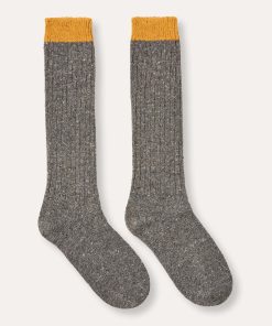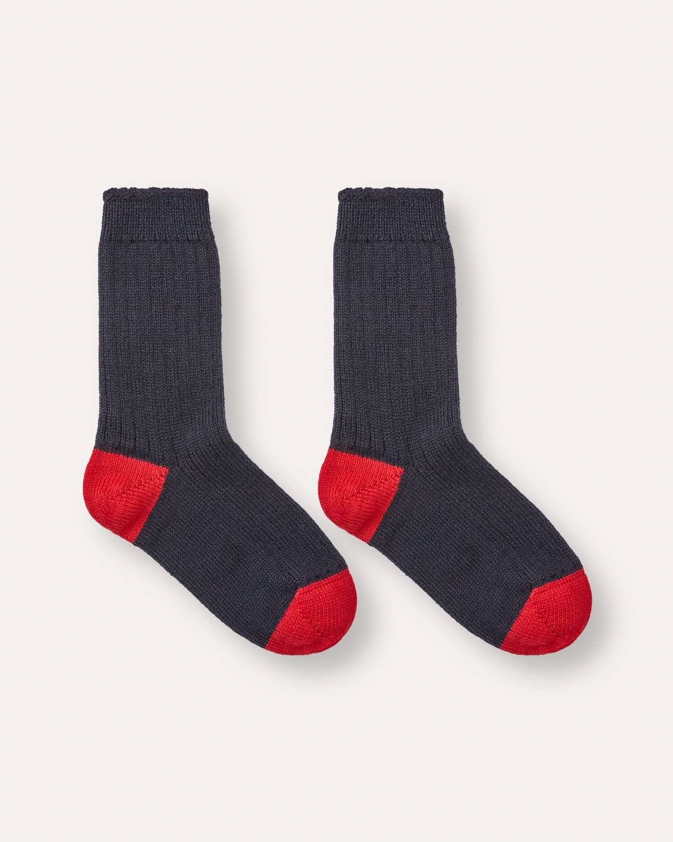 British made from Merino Wool, these thick socks feature a contrast heel and toe, ideal for styling with clogs. They provide a comfortable fit and a subtle pop of colour.