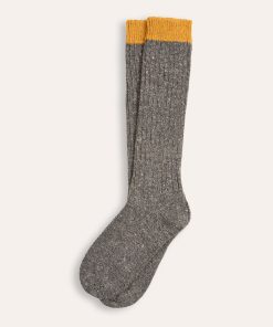 British made from Merino Wool, these thick socks feature a contrast heel and toe, ideal for styling with clogs. They provide a comfortable fit and a subtle pop of colour.