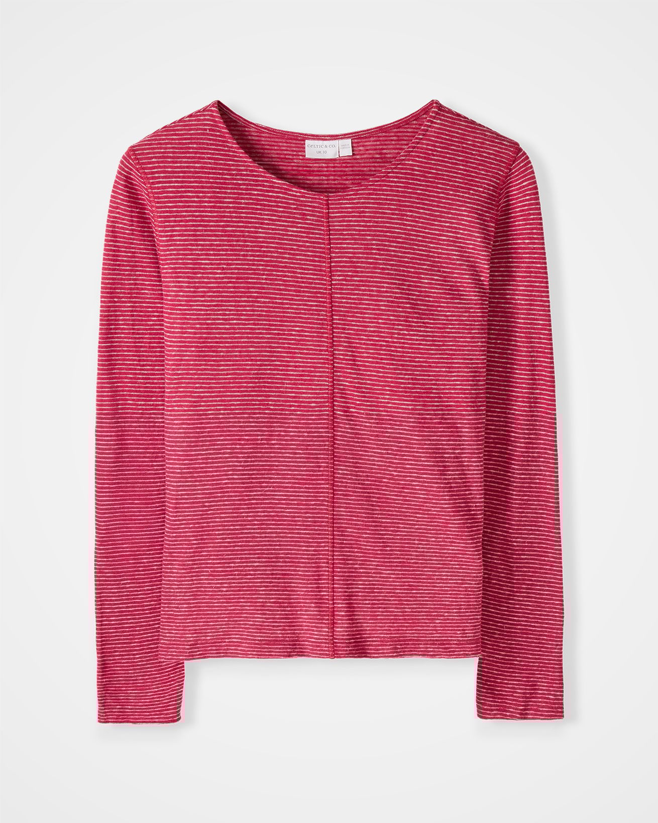 Featuring a classic crew neckline and straight fit, this long sleeve tee is finished with flat lock stitching for subtle detail. The linen blend fabric adds a touch of natural texture and breathability, perfect for comfortable layering.