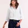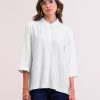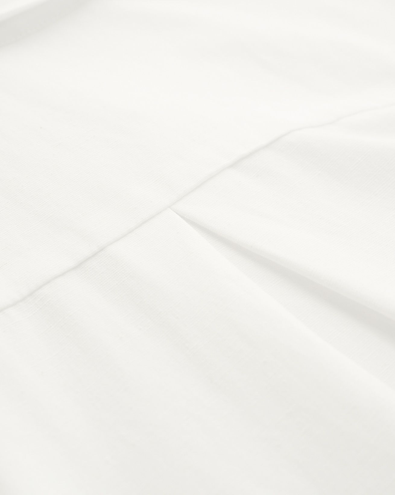 This flattering shirt features a slightly swing shape due to the deep box pleat detail at the back. With a curved hem, which is slightly longer at the back for more coverage, and cropped three-quarter-length sleeves with wide cuffs, the silhouette is clean and modern. The shirt collar, full-length button-through placket, and buttons made from Corozo nut complete the shirt.