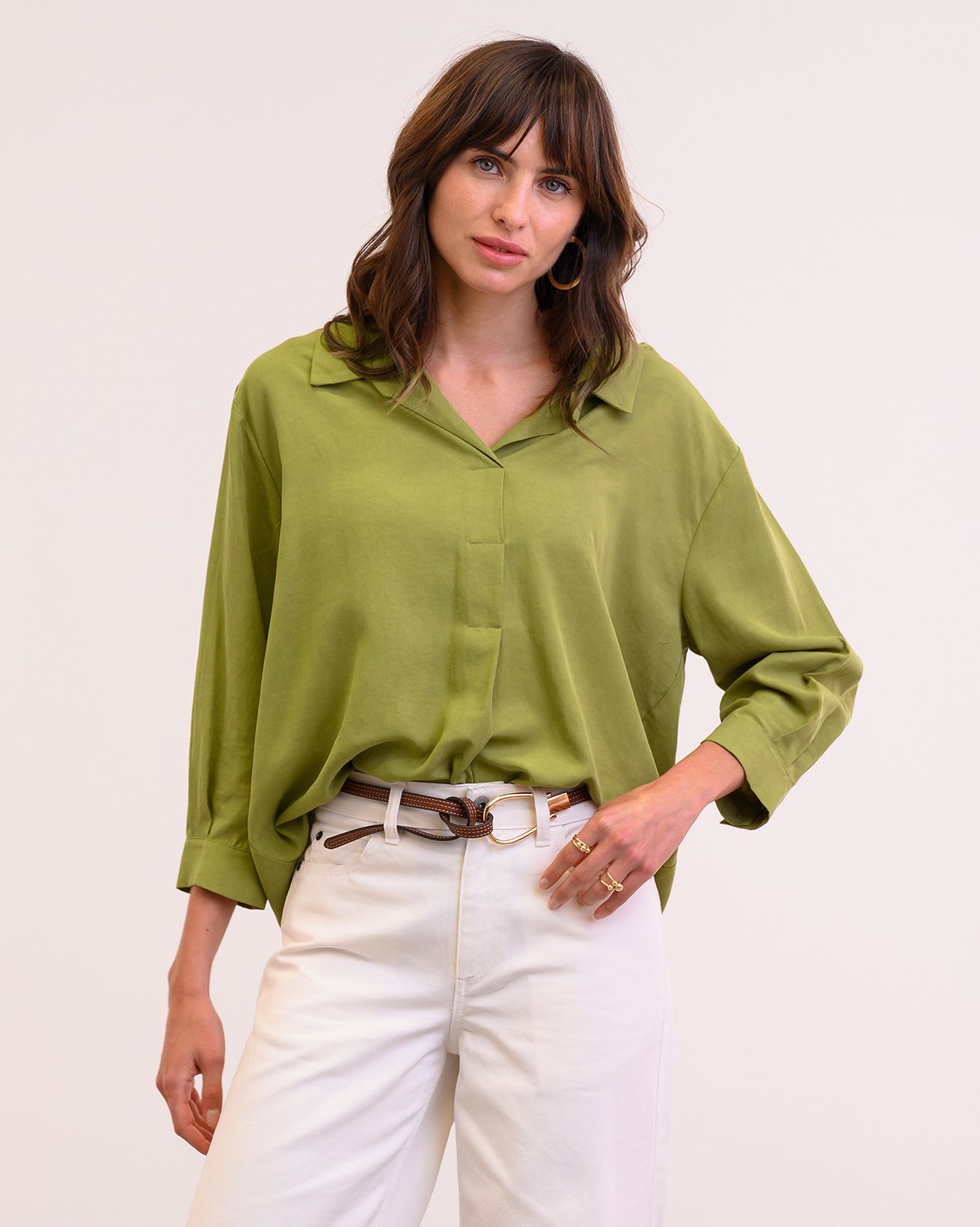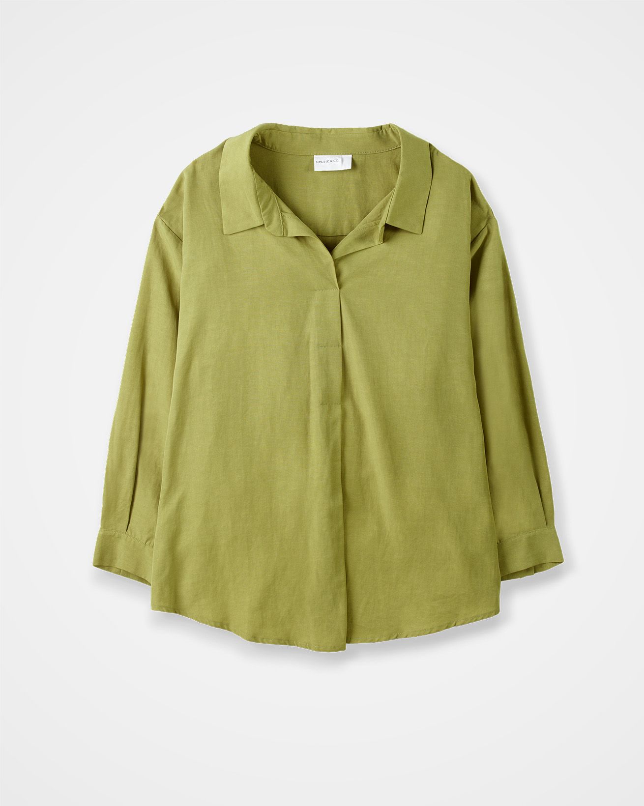 The Linen Blend Relaxed Blouse boasts bracelet-length shirt sleeves with buttoned cuffs, and a shirt collar with a V neckline. The pleat front detail adds a touch of elegance, while the loose, slightly oversized fit and curved hem, slightly longer at the back, provide a contemporary edge. The yoke panel detail on the back of the blouse and the buttons made from Corozo nut complete the look. Crafted from a smooth, soft, drapey fabric with a slight texture from the linen, this blouse promises to be a staple wardrobe style.