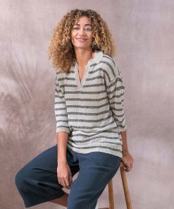 The Linen Blend Relaxed Blouse boasts bracelet-length shirt sleeves with buttoned cuffs, and a shirt collar with a V neckline. The pleat front detail adds a touch of elegance, while the loose, slightly oversized fit and curved hem, slightly longer at the back, provide a contemporary edge. The yoke panel detail on the back of the blouse and the buttons made from Corozo nut complete the look. Crafted from a smooth, soft, drapey fabric with a slight texture from the linen, this blouse promises to be a staple wardrobe style.