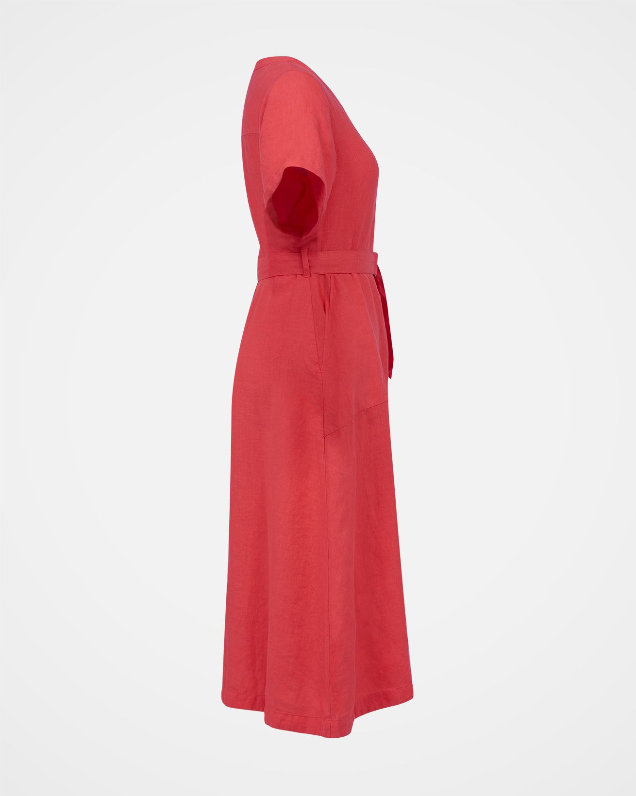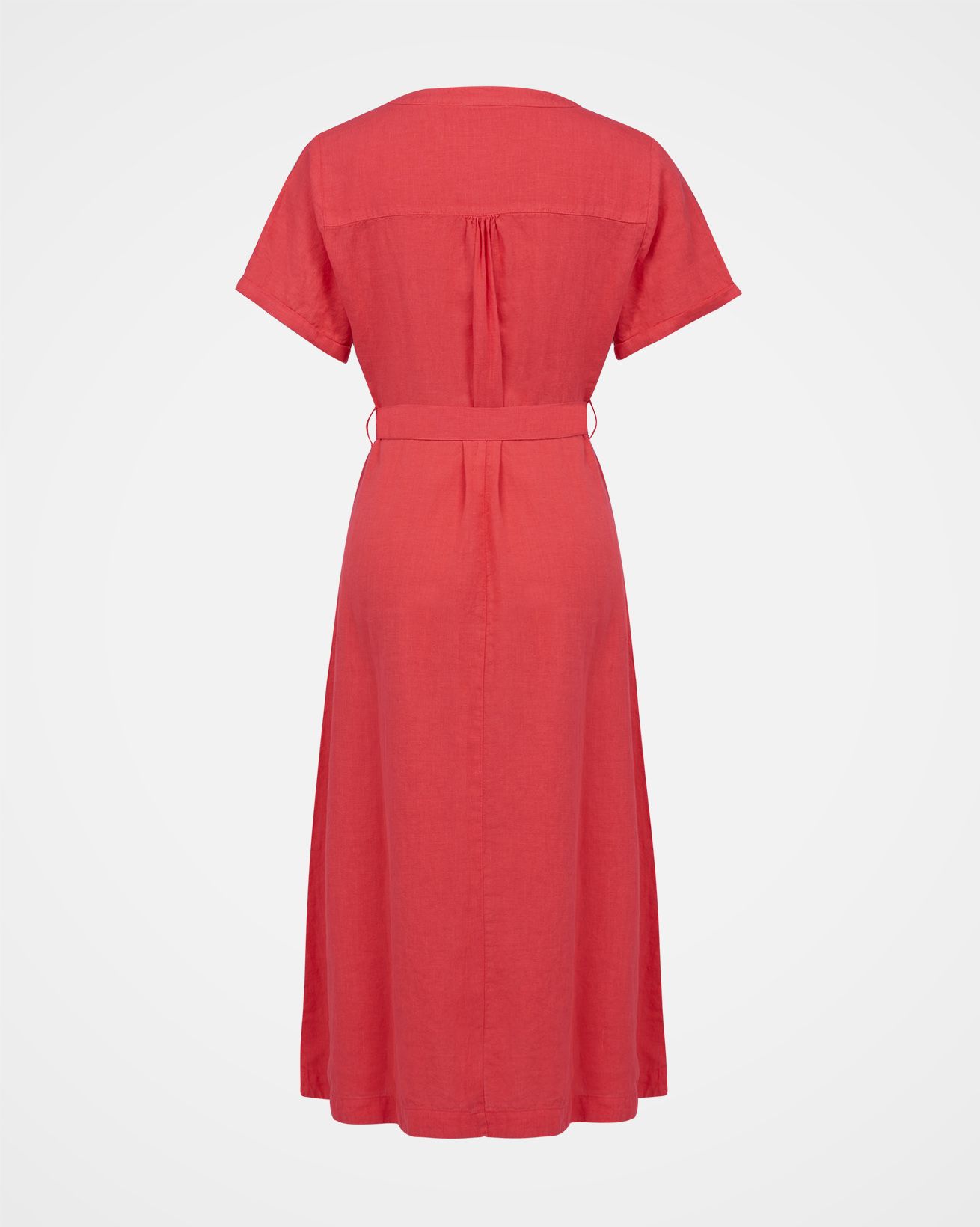 This button through midi dress is light, airy and breathable, making it great for summer. A D-ring belt at the waist allows the dress to be adjusted to create your desired fit. Featuring a single chest pocket and two to the hip, turn back cuffs on the sleeves, a crew neckline and Corozo buttons. It has been washed to give a tumbled, soft appearance, and its pull-on style makes it an effortless, classic garment.