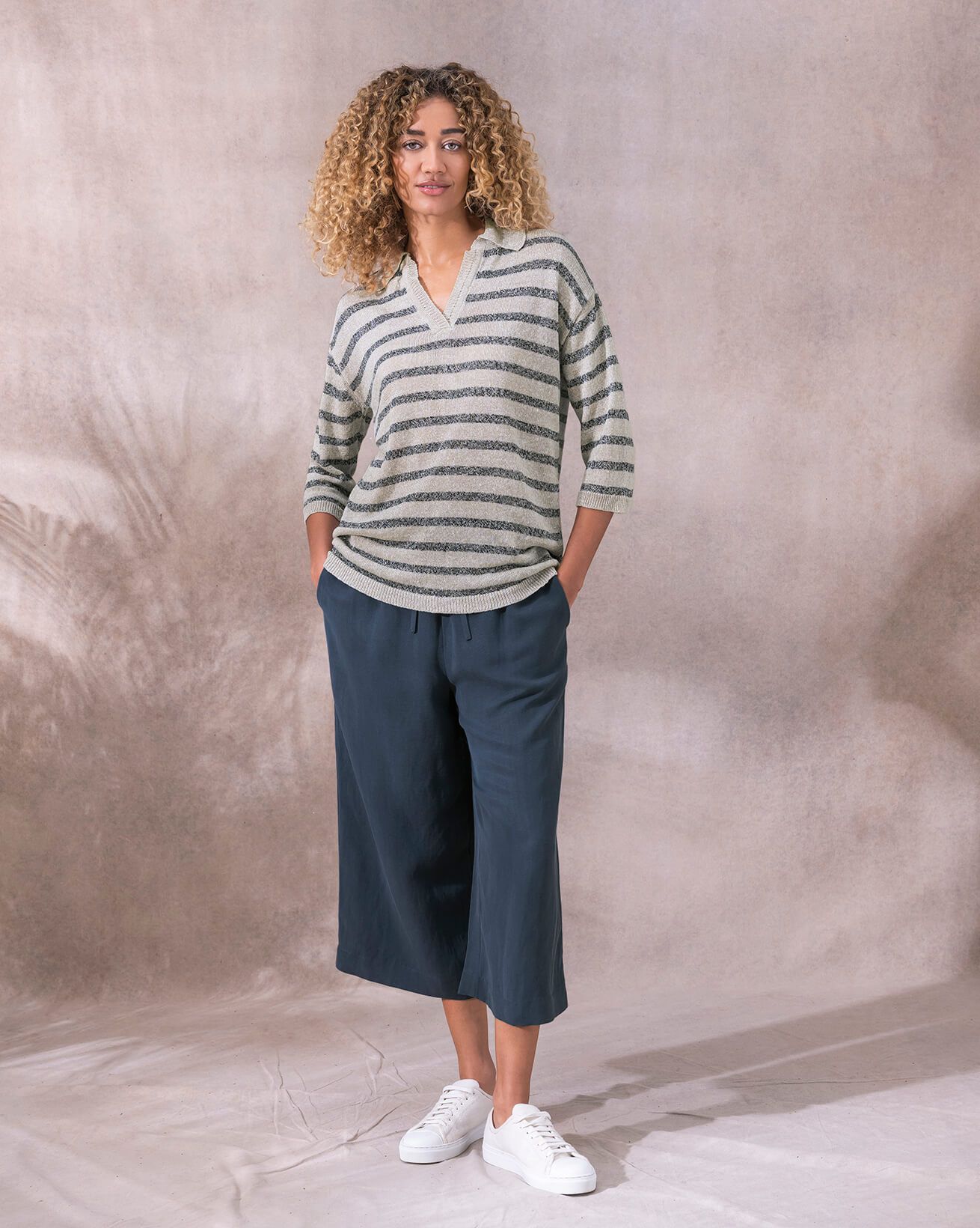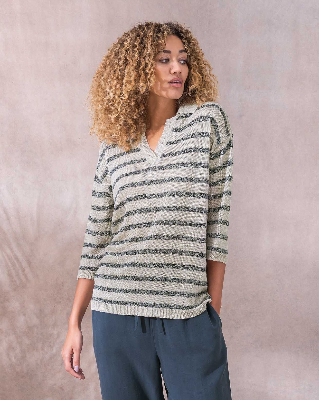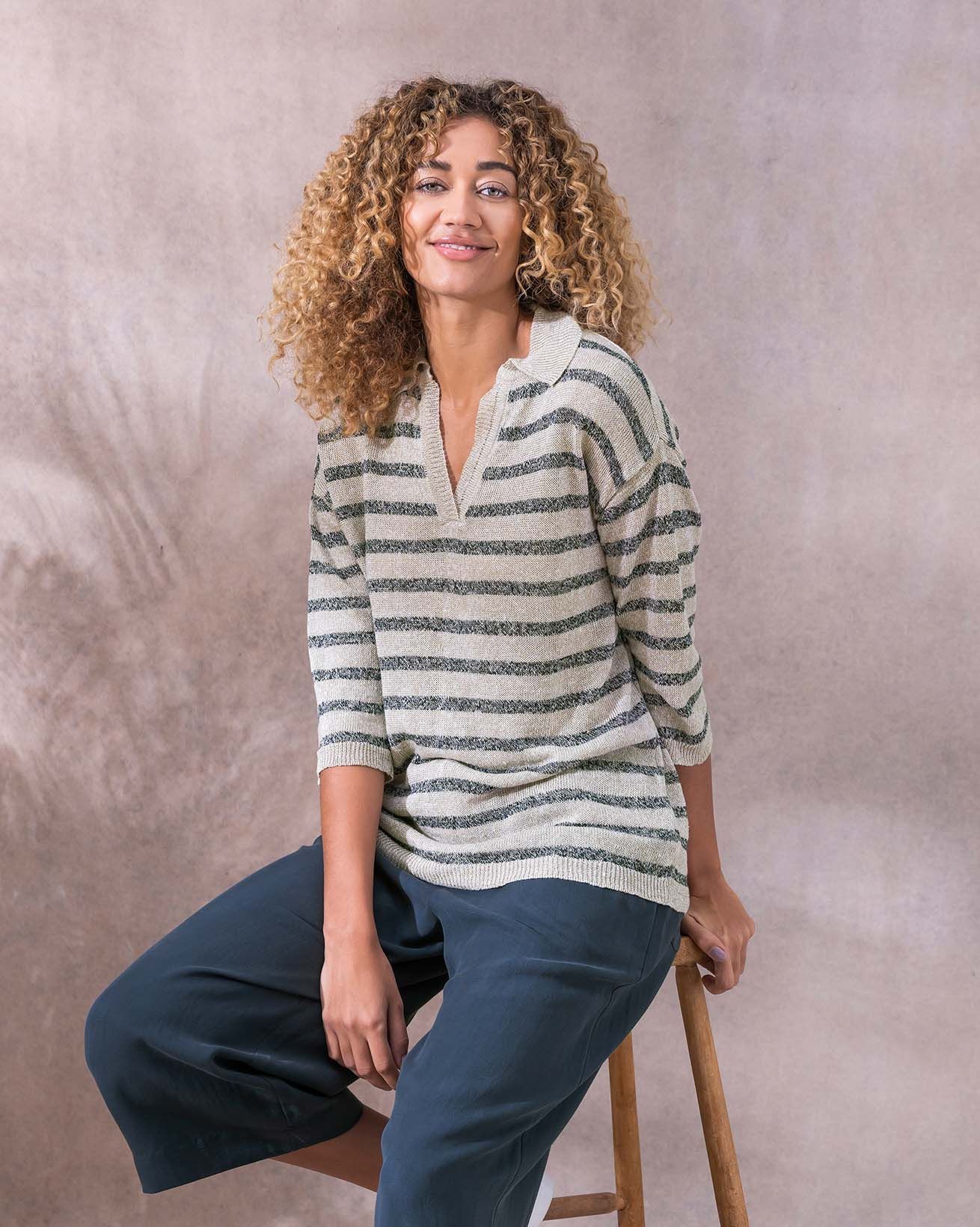 So lightweight and breathable you’ll want to wear it every day, our Johnny-collar polo top is great for casual workwear, walks on the beach or lazy days well spent in the comfort of your home. You could also couple it with our longline cardigan, which is created in exactly the same yarn for a matchmade look.