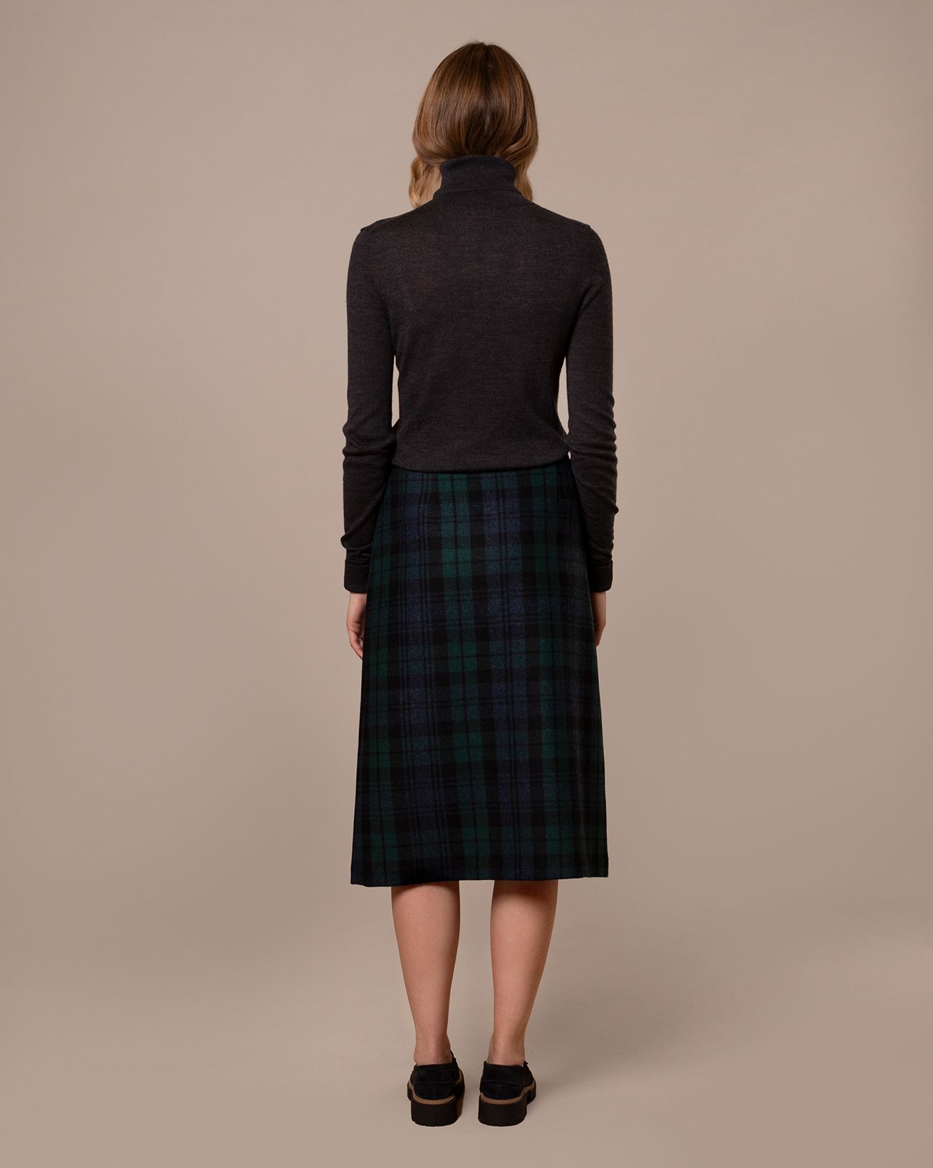 Team it with our felted funnel-neck jumper and your favourite boots. And don’t forget your kilt pin: those in the know place it on the right-hand side between 2-4 inches from the bottom and 1.5-2 inches from the side.