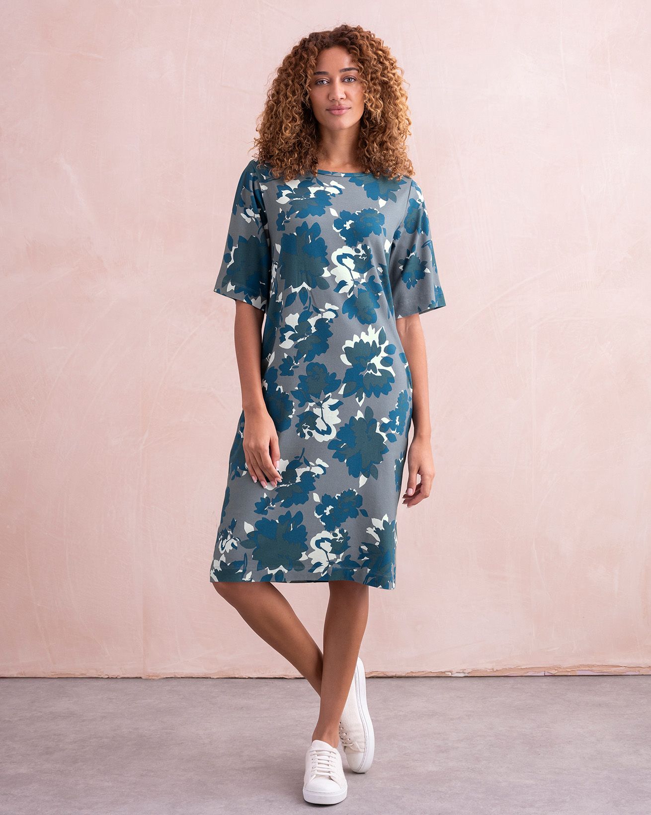 This knee length, straight fit t-shirt dress is easy to wear, effortless to style and extremely comfortable. The half length, flared sleeves are very flattering and add extra coverage. Featuring a crew neckline and side pockets, this dress was designed to be lived in. Wear with trainers in town and bare feet at the beach.