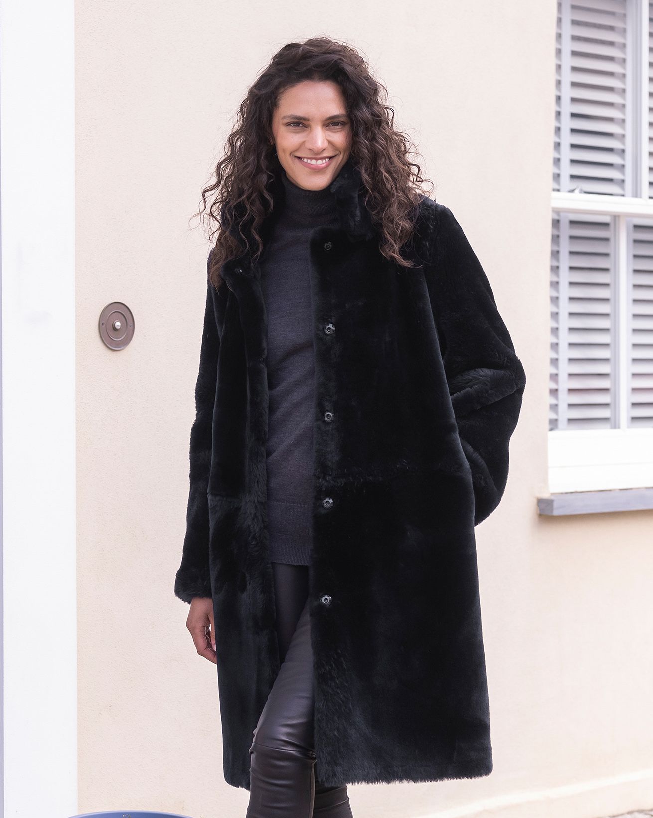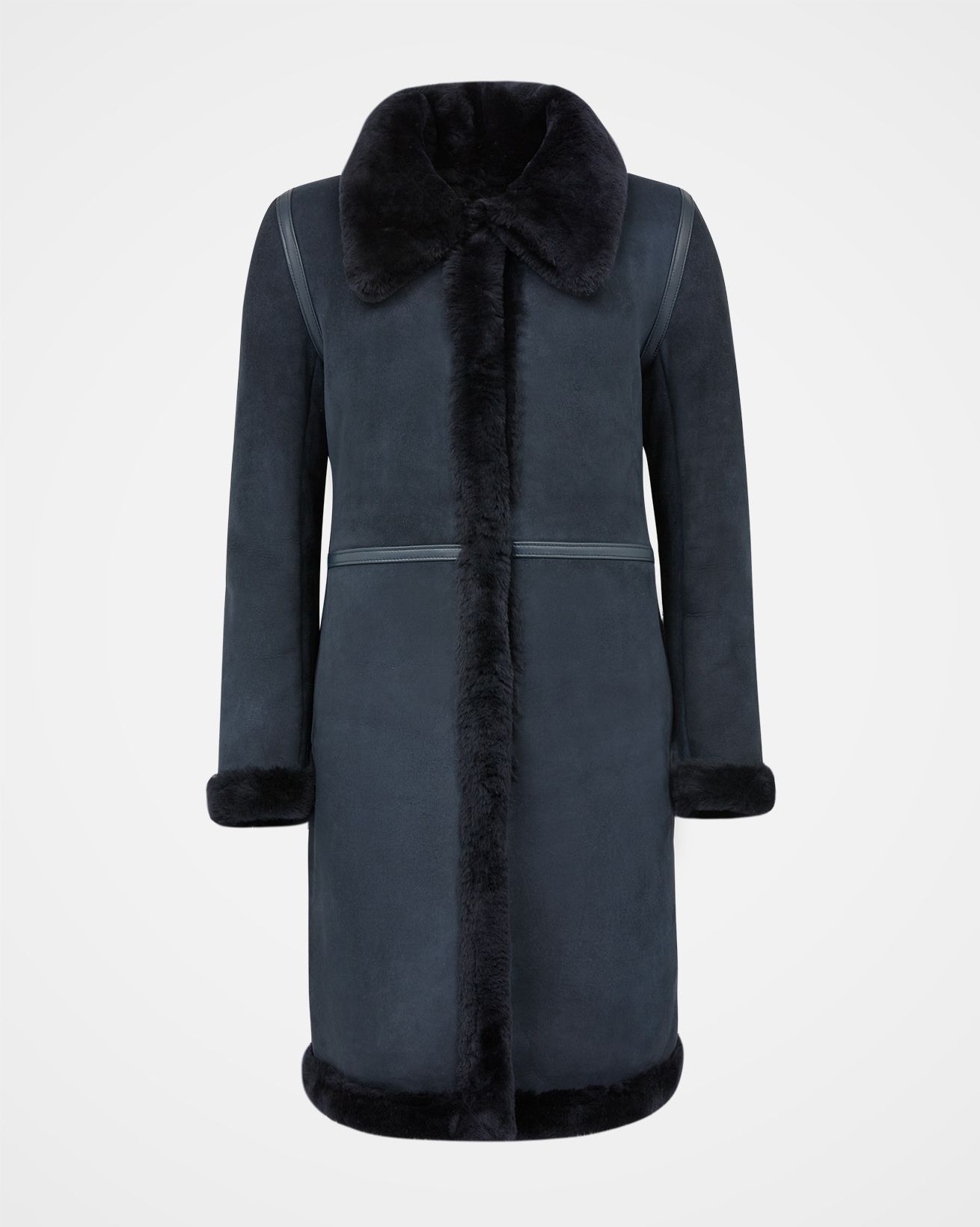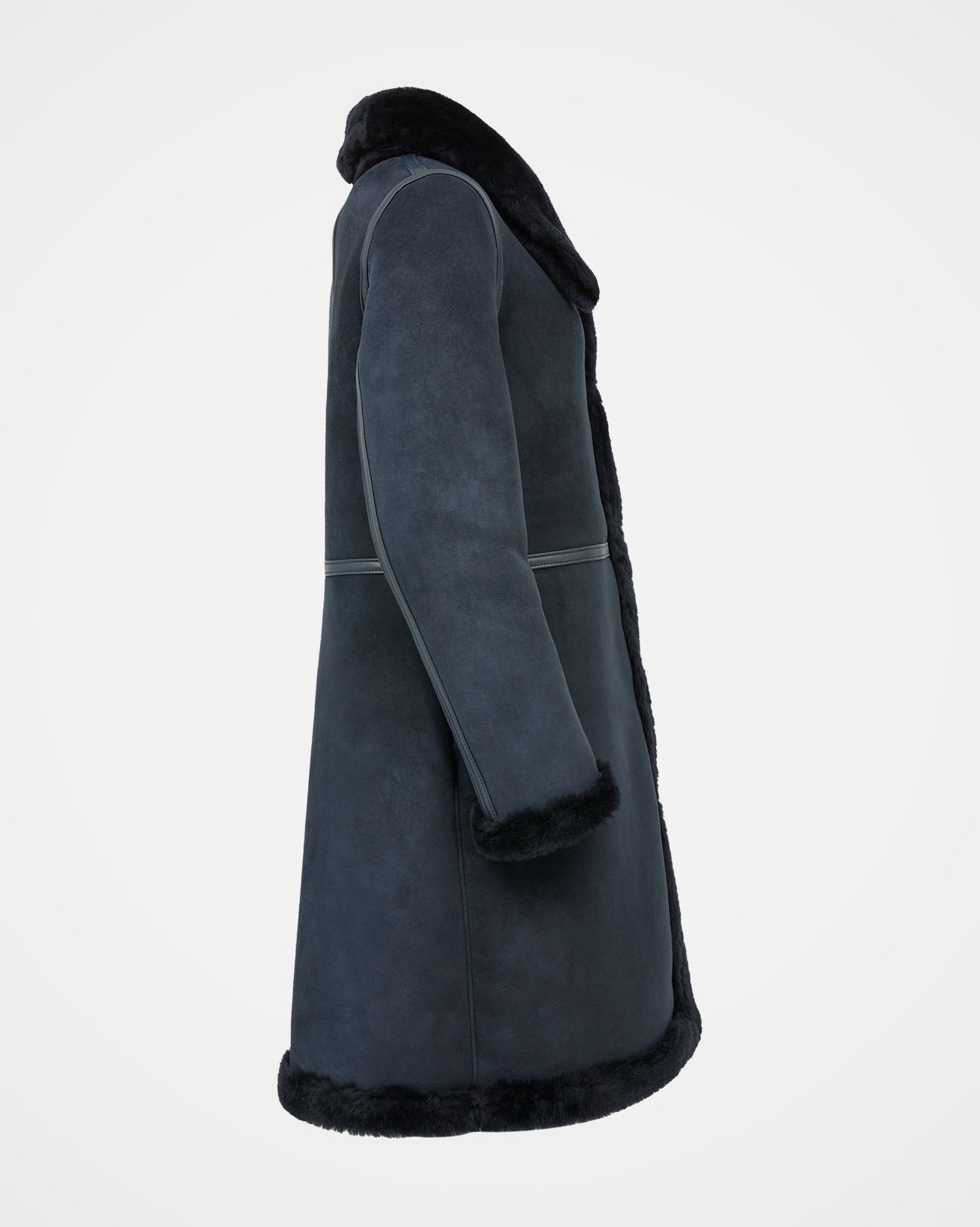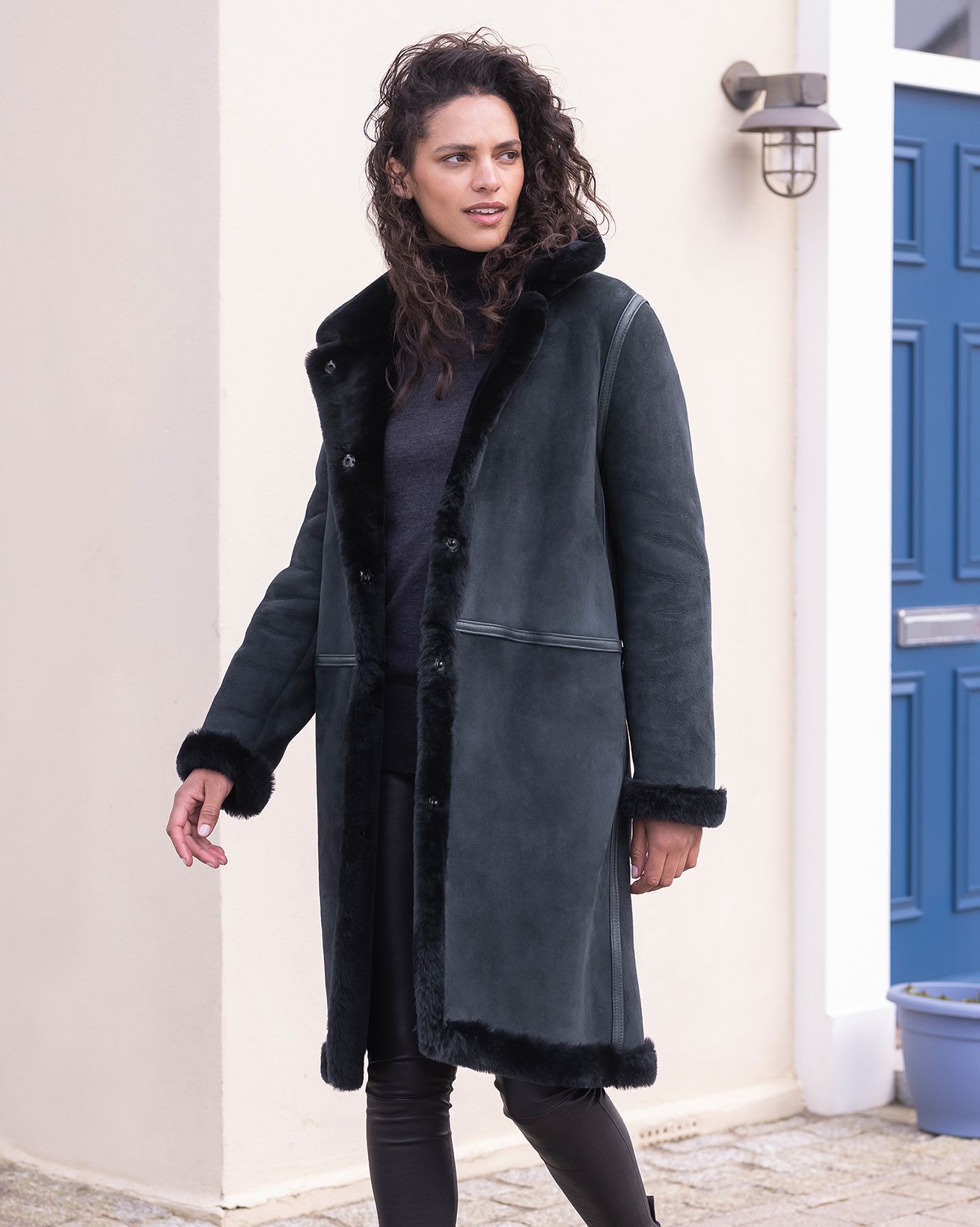 In a fabulous reversible style, this leather trim sheepskin coat is both warm and luxurious. Go sleek and smart by wearing the suede finish on the outside, or opt for a luxe, dressier look by showing off the plush ironed wool side instead. The collar is doubled to allow for soft sheepskin against your skin whichever way you choose to wear it. We’ve added contrast leather binding over all the seams to give an extra special finish. Details include popper fastenings and pockets in the side seam.
