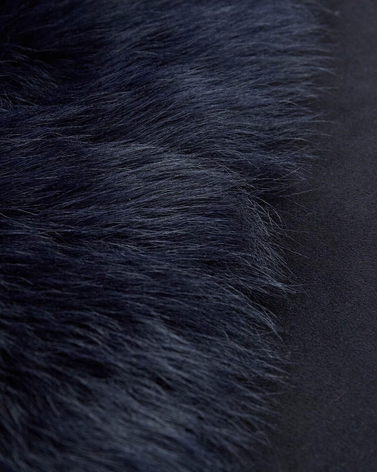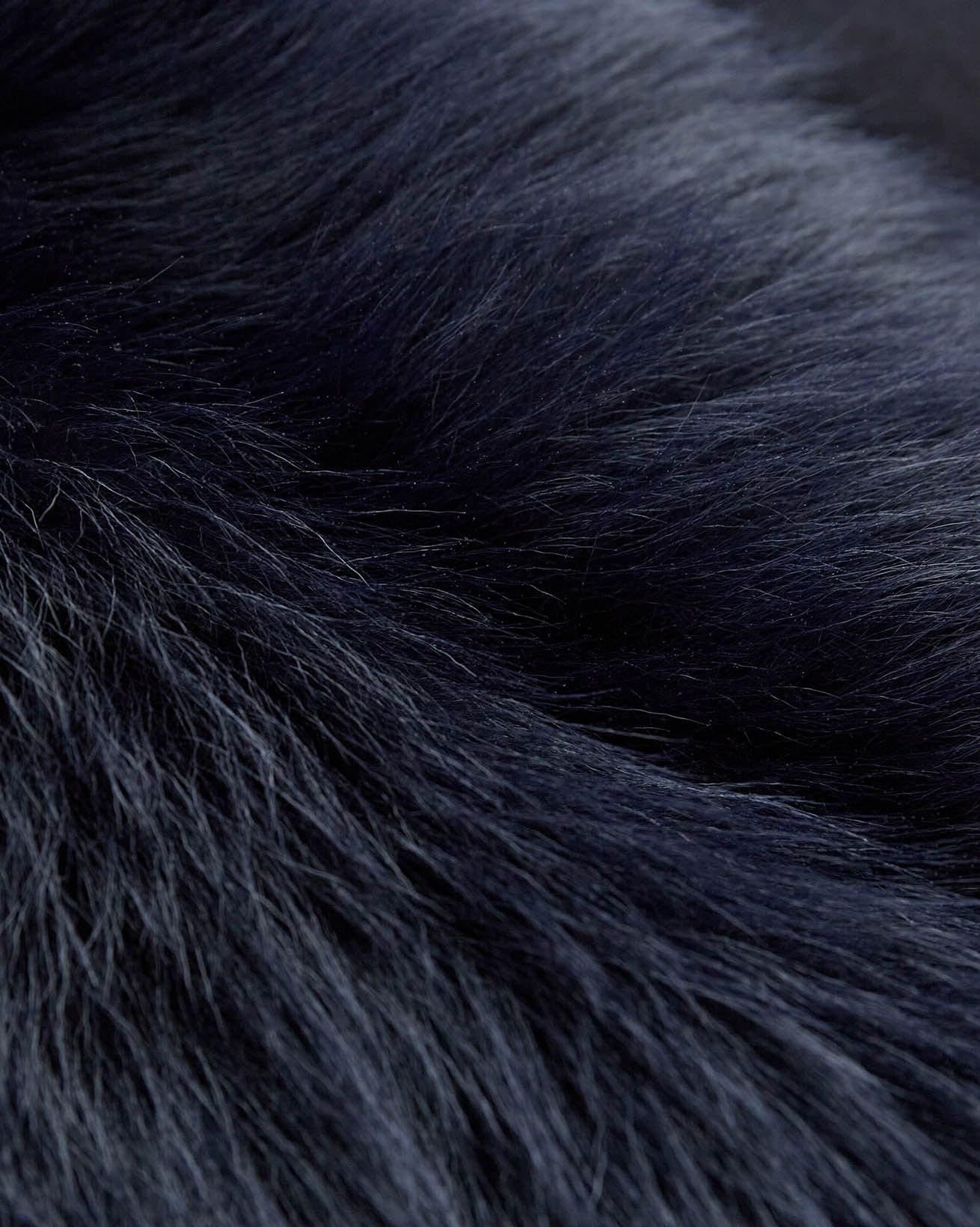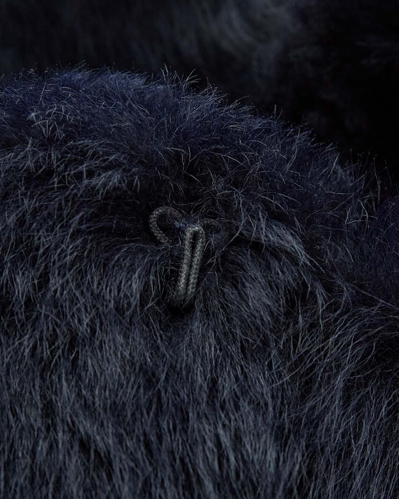 This longline gilet features a collared neckline and combines shorter merino sheepskin for the body with longer toscana sheepskin for the collar, front, and cuff trim. Finished with hook and eye fastening and side pockets, it exudes timeless appeal.