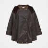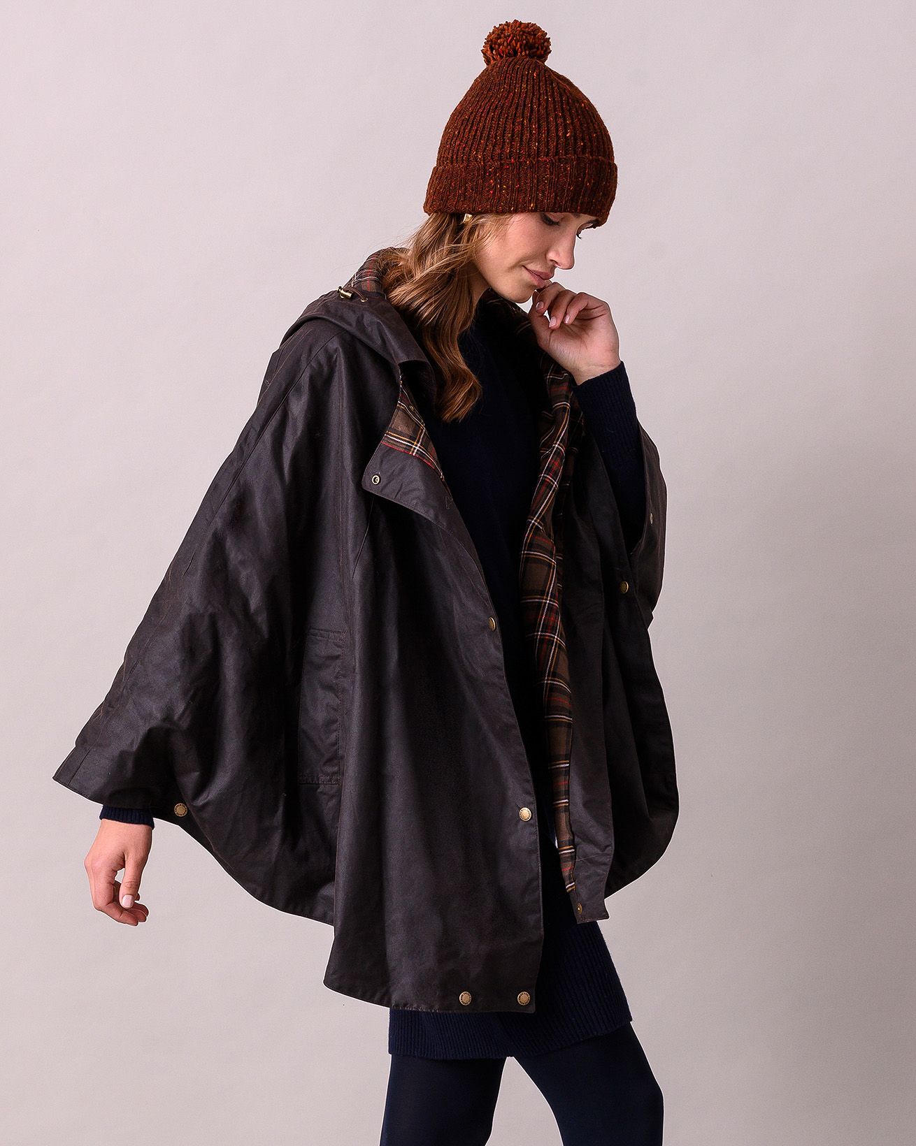 Combining the fun with the functional, our waterproof cape is just the ticket when the unpredictable British weather catches you out.Crafted in cotton with a lightly waxed finish, this coat features side slits to create a feminine drape that doesn’t swamp your figure.The storm-flap collar and hood can be poppered closed for extra protection in downpours, and twin pockets complete the look with a little added practicality.
