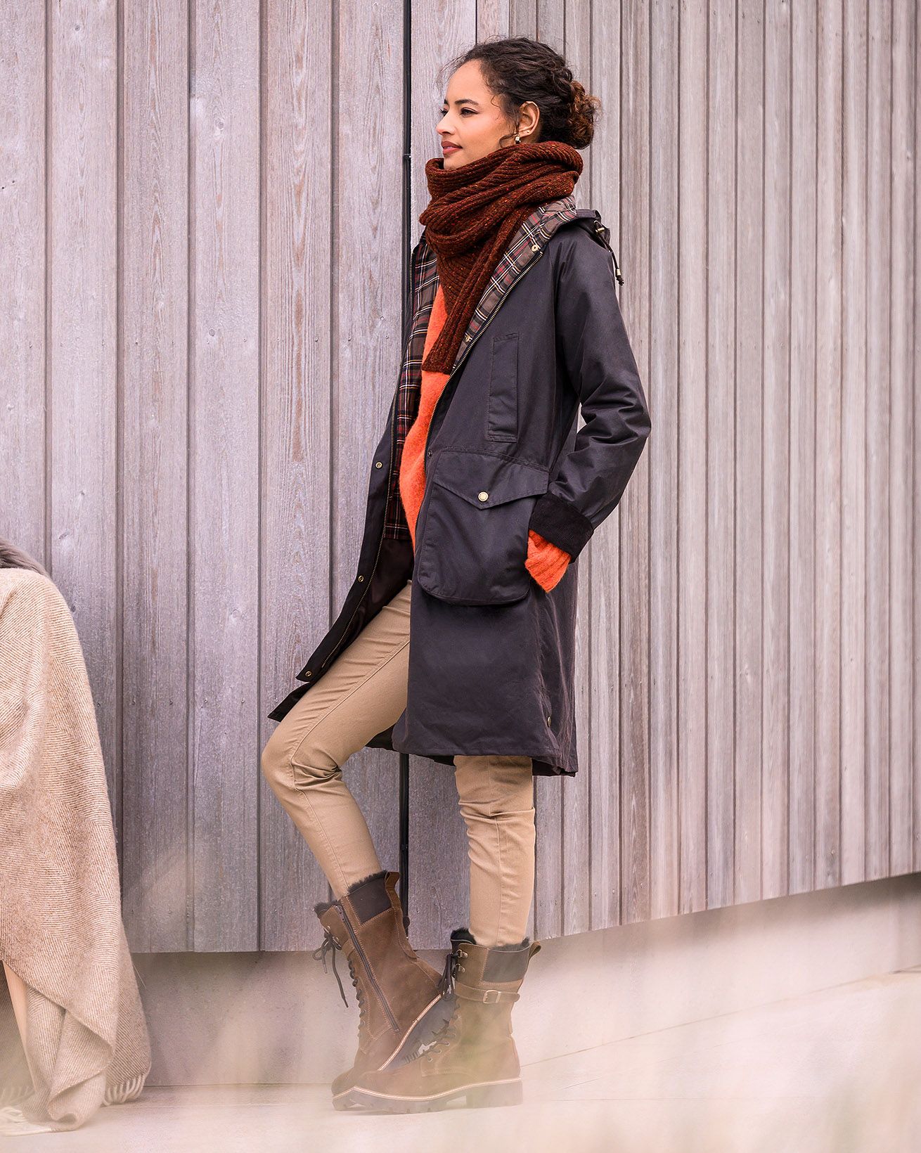 Waxed cotton is a durable, long-lasting fabric that has been infused with a blend of waxes and oils. Our wax cottons have a traditional waxy handle finish, crafted to help protect you against the elements. The material is naturally breathable that adjusts to the ambient temperature, so it gets softer and more breathable in warm weather and stiffer and more wind resistant in cold conditions.