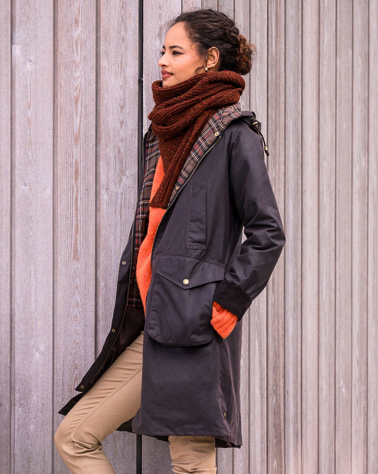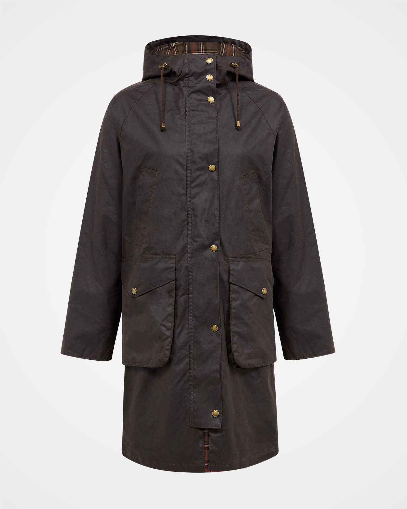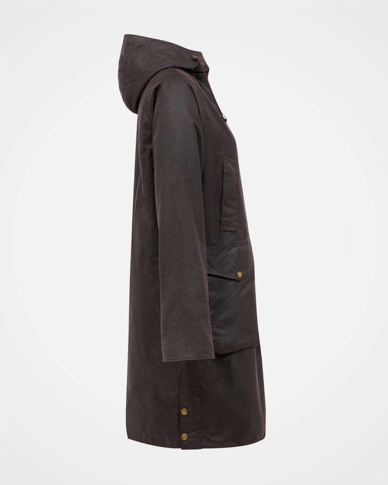 Designed with a hooded neckline and longline styling, this waxed cotton overcoat exudes timeless versatility. Enhanced with patch and handwarmer pockets, it offers practical functionality for your outdoor adventures.