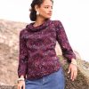 This beautiful woven blouse has a high, modest cowl neckline made with a double layer of fabric. Perfect for warmth in the cooler months, the long sleeves are finished with pretty shirt cuffs that fasten with natural Corozo buttons. We’ve added splits in the side seam for ease of fit.