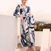 Made from a light and airy fabric that drapes beautifully, this button through midi dress has a full, flowing skirt. It can be tied at the front or back, and features a v-neckline with stand collar detailing, and long sleeves with cuff and button fastenings.