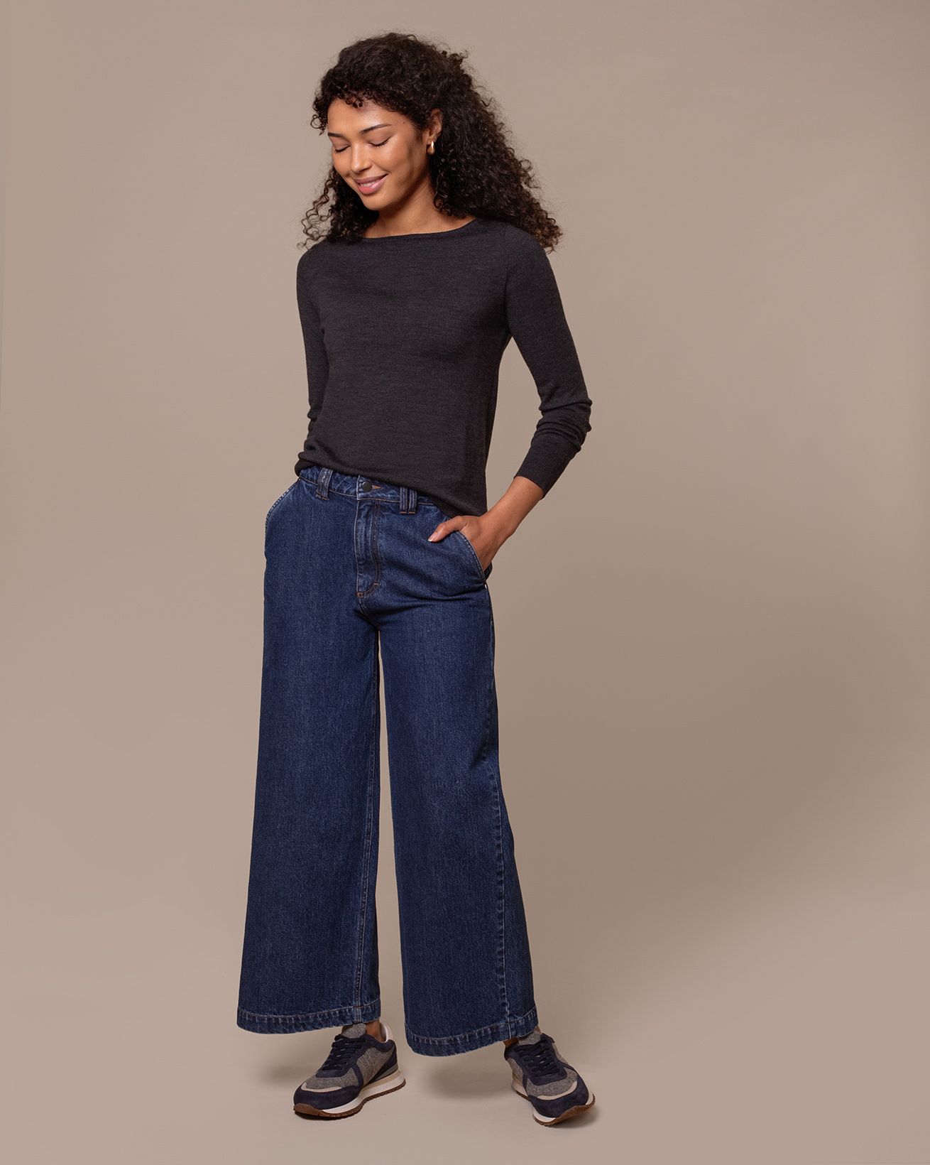 Cropped wide-leg trousers crafted from pure cotton denim. Designed with a straight-leg silhouette and cropped length for a clean, versatile fit. An easy everyday option offering comfort and structure in equal measure.
